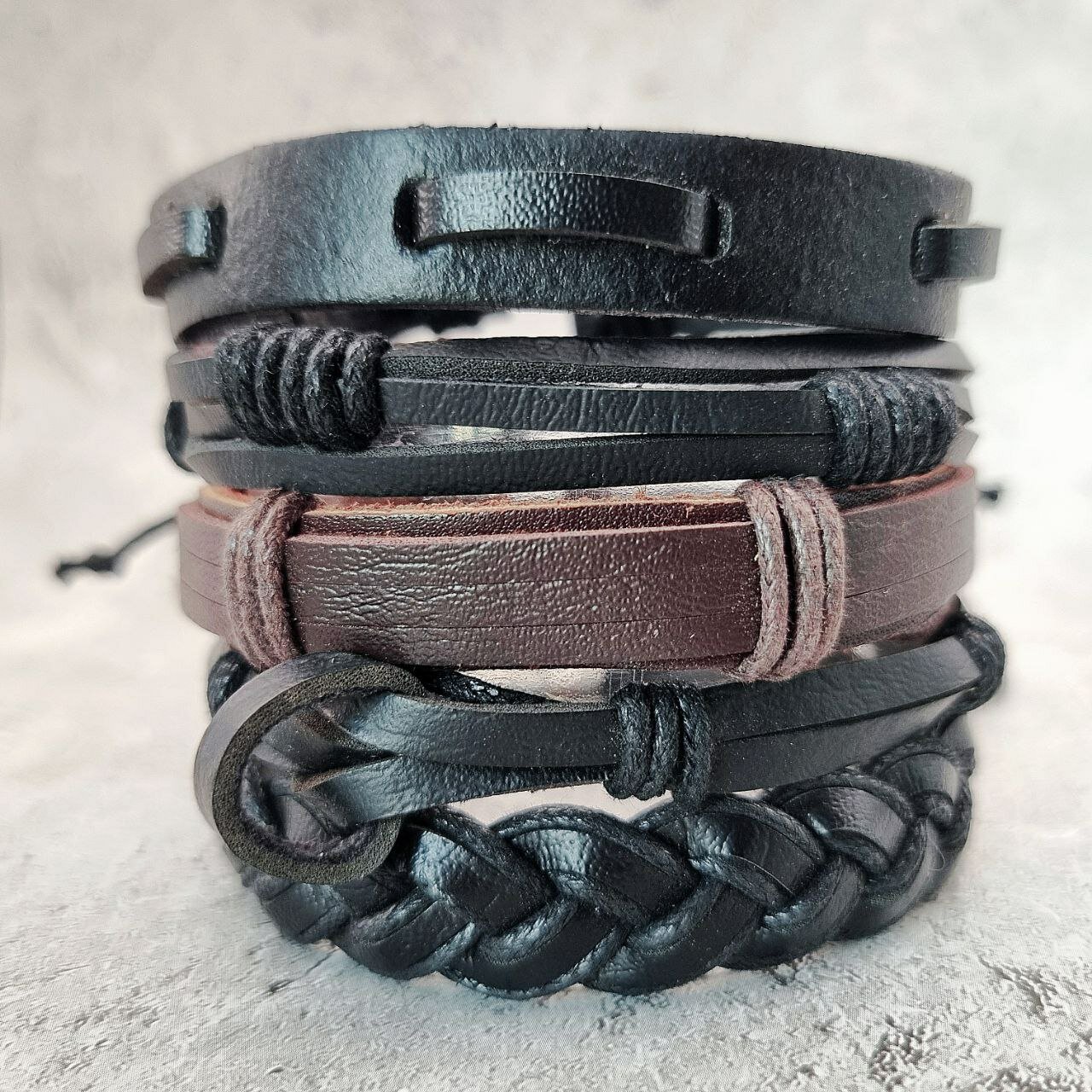 | Дополнительная информация | Браслет на завязках безразмерный, кожаный, бижутерия, украшение на руку, комплект\набор 5 в 1 |