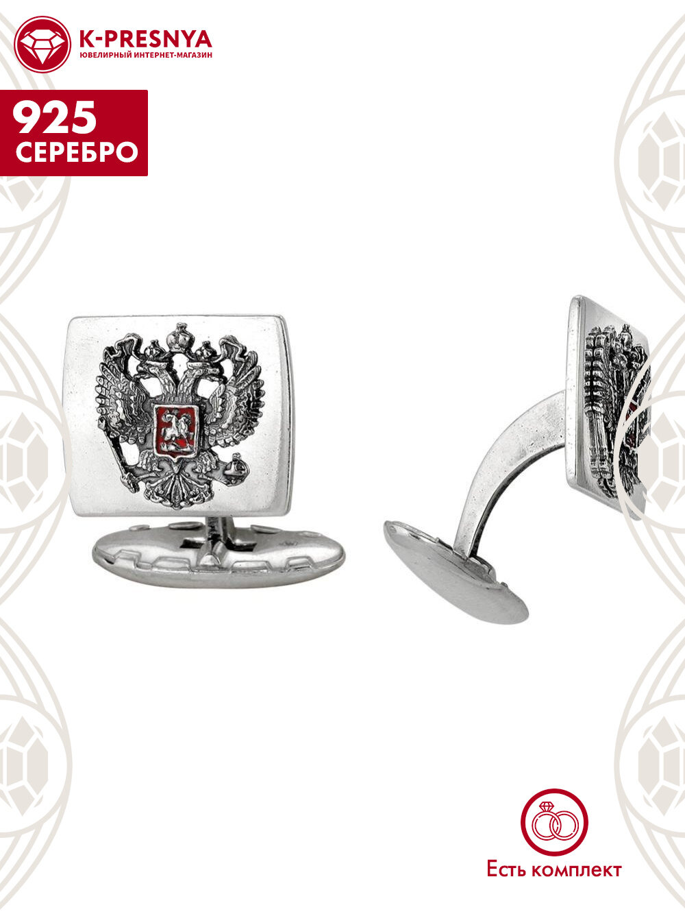 Запонки Красная Пресня серебро 925 пробы, покрытие - оксидирование, отделка - эмаль, без вставок