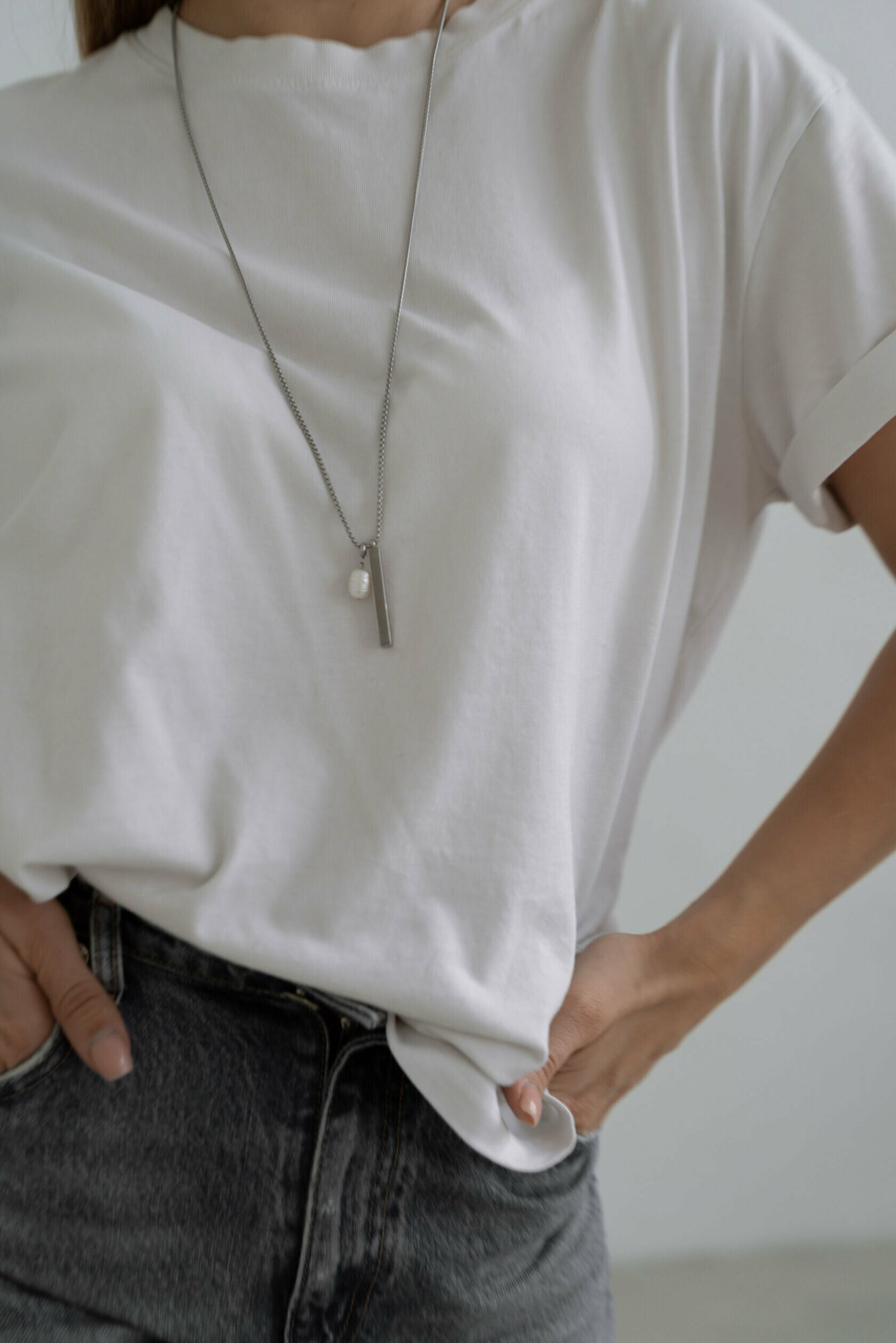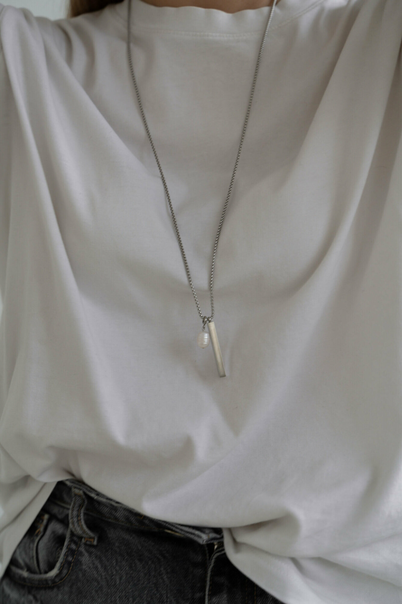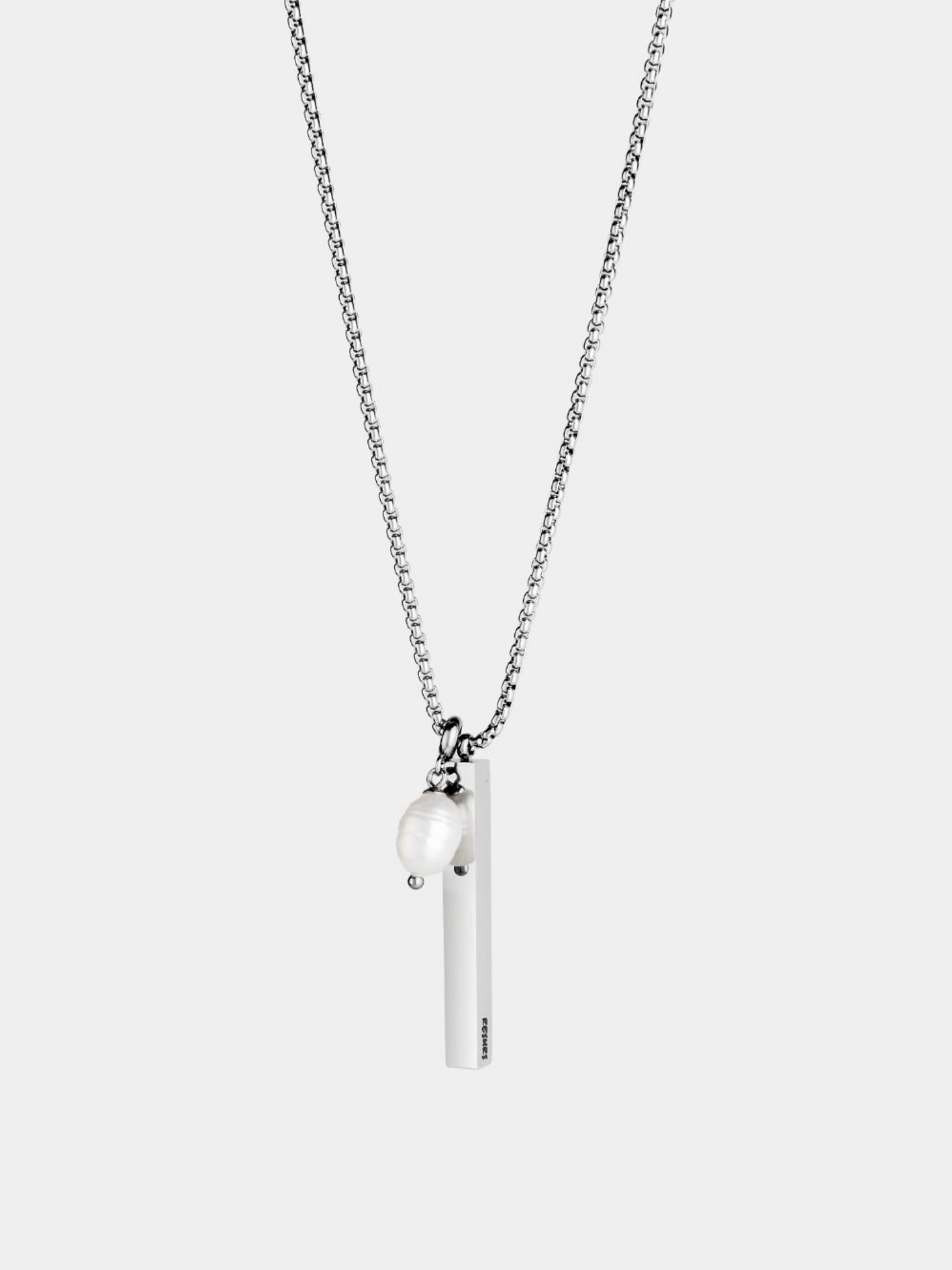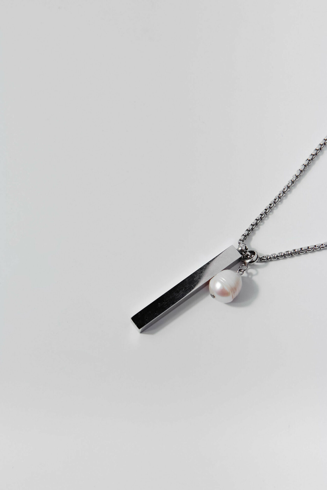 Цепь со стальным цилиндром и жемчужиной