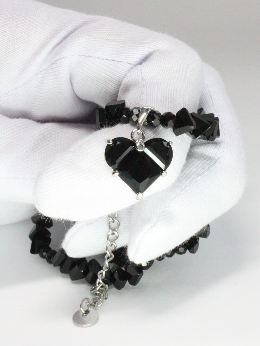 Колье-чокер искрящегося хрустального стекла черный/зелёный сердце