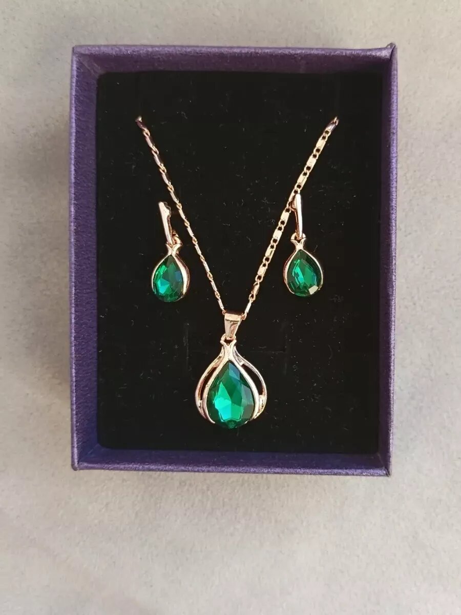 Комплект бижутерии: подвеска, серьги, цепь, кристалл, зелeный