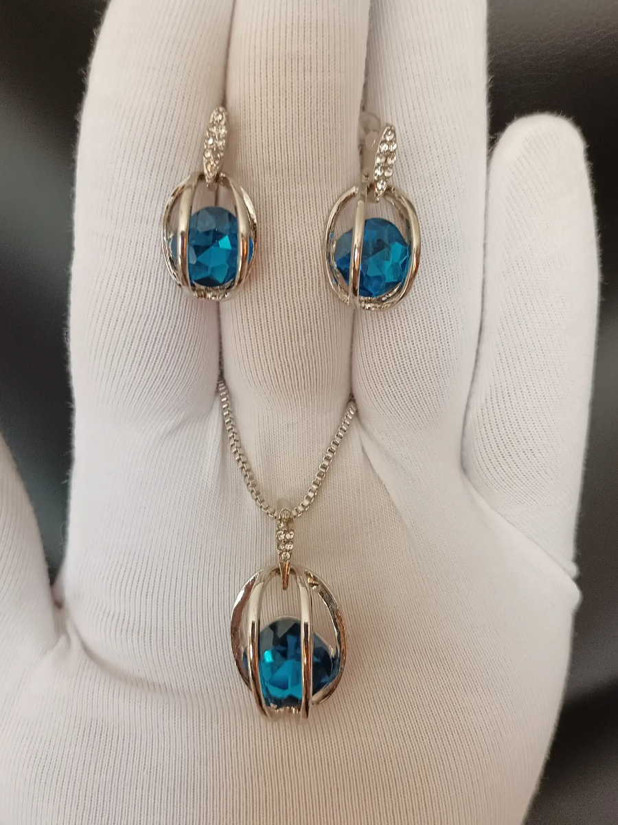 Купить Комплект бижутерии, кристалл, голубой