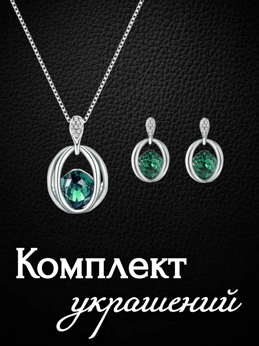 Купить Комплект бижутерии: подвеска, серьги, цепь, кристалл, зелeный