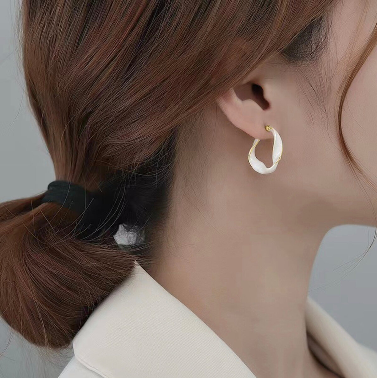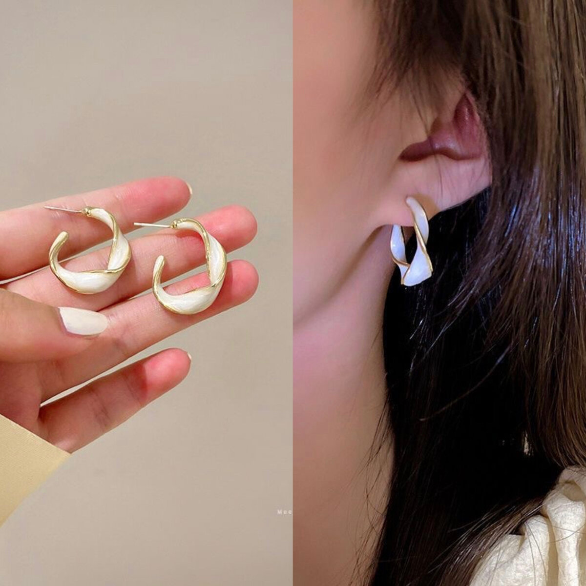 Серьги бижутерные двусторонние Style Group 27мм, перламутровые кольца для девушек