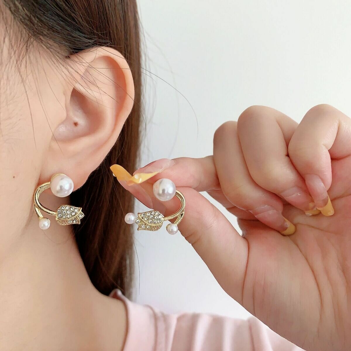 Серьги-пусеты "Style group" с жемчужной имитацией, размер 2см, розовые