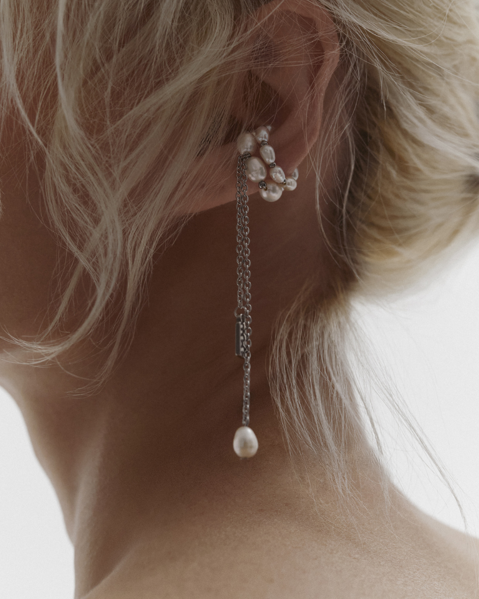 Кафф ресурс жемчужный с двумя длинными подвесками