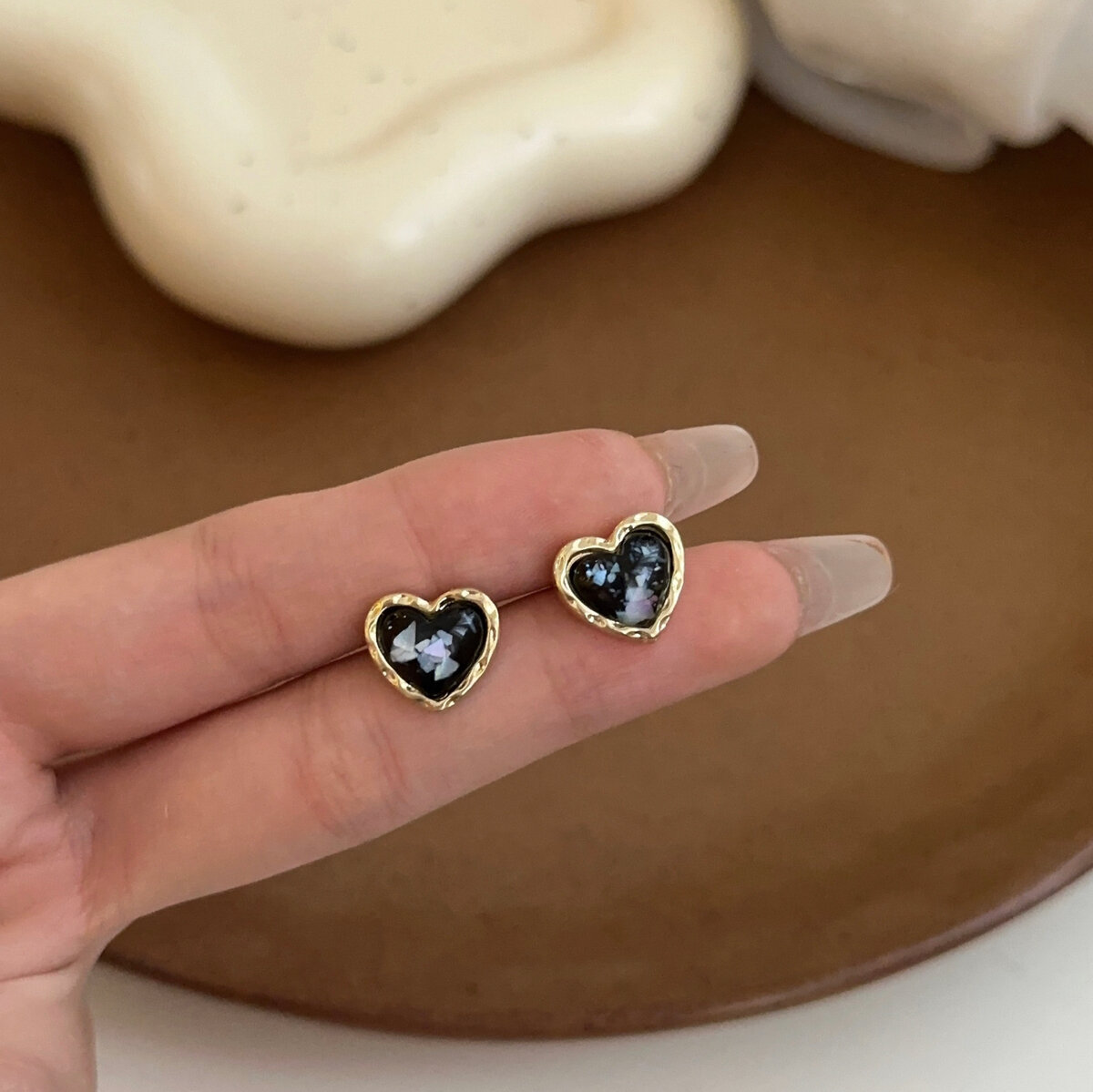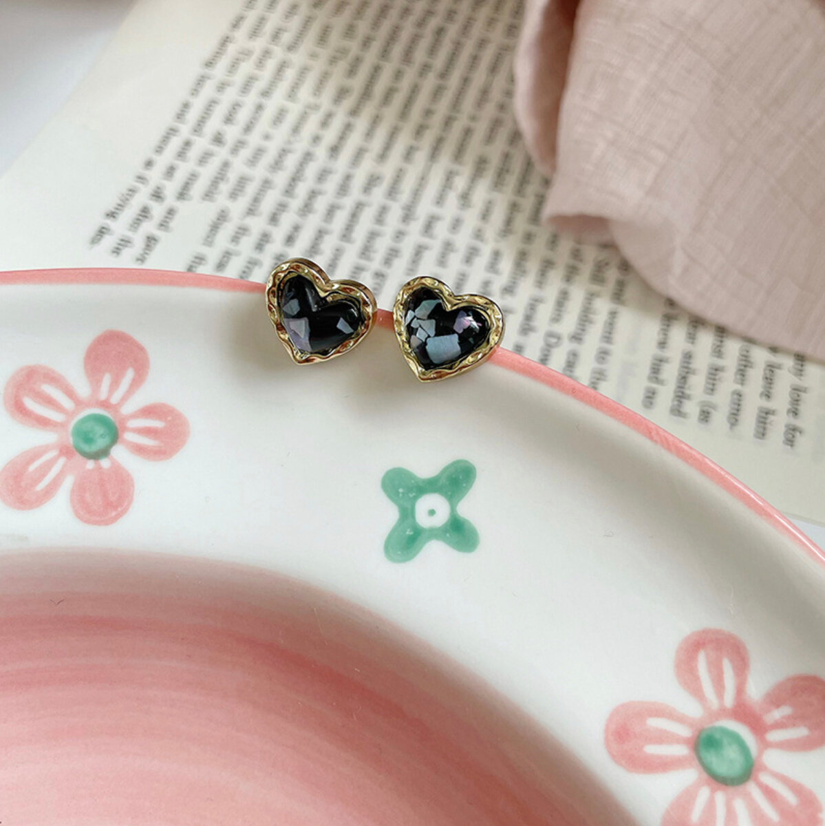 Пусеты 12 пар One year, сердцем к сердцу, цвет цветные в золоте