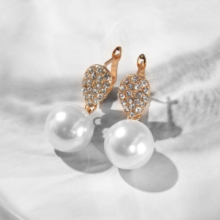 Серьги с жемчугом "Грейс" капля и сфера, цвет белый в золоте 5002952