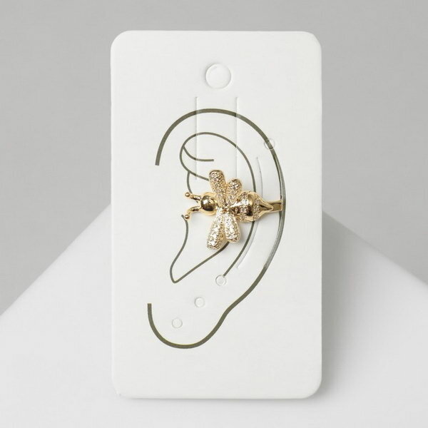 Серьга "Кафф" пчела, цвет белый в золоте 6244714