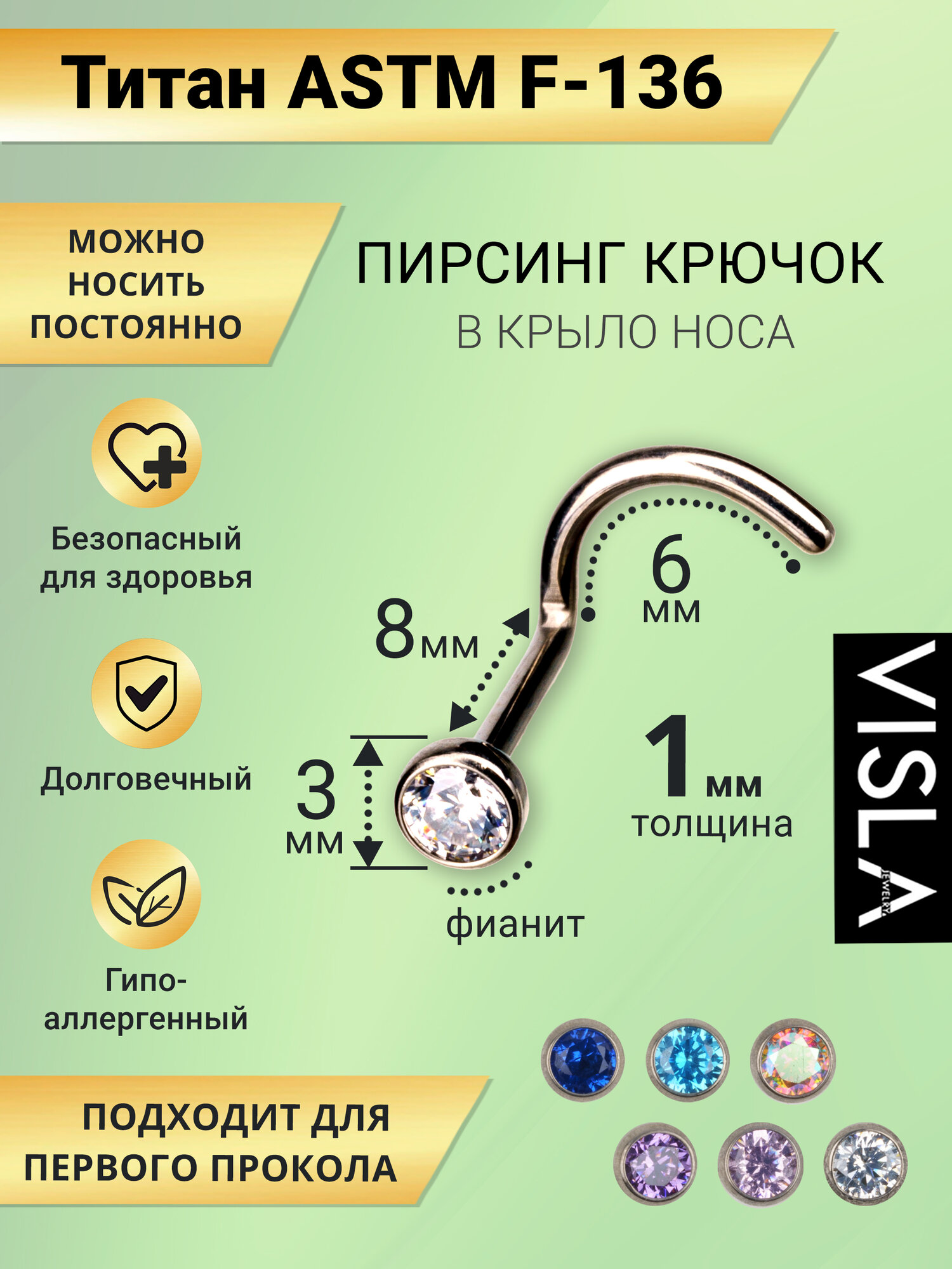 Купить Пирсинг в нос Visla Jewelry, размер 1 мм, длина 0.8 см, длина стержня 8 мм, 1 шт., бесцветный