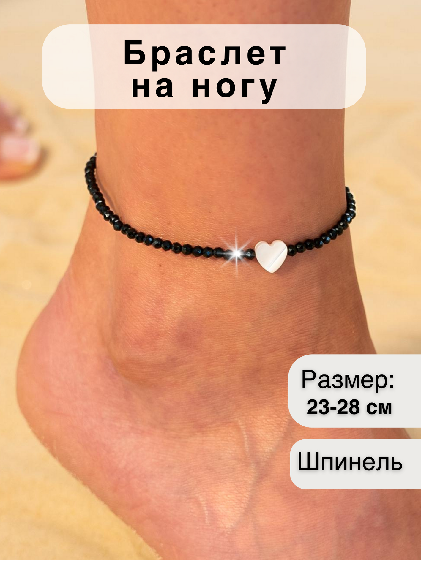 Браслет на ногу, длина 23 см, 1 шт., микс