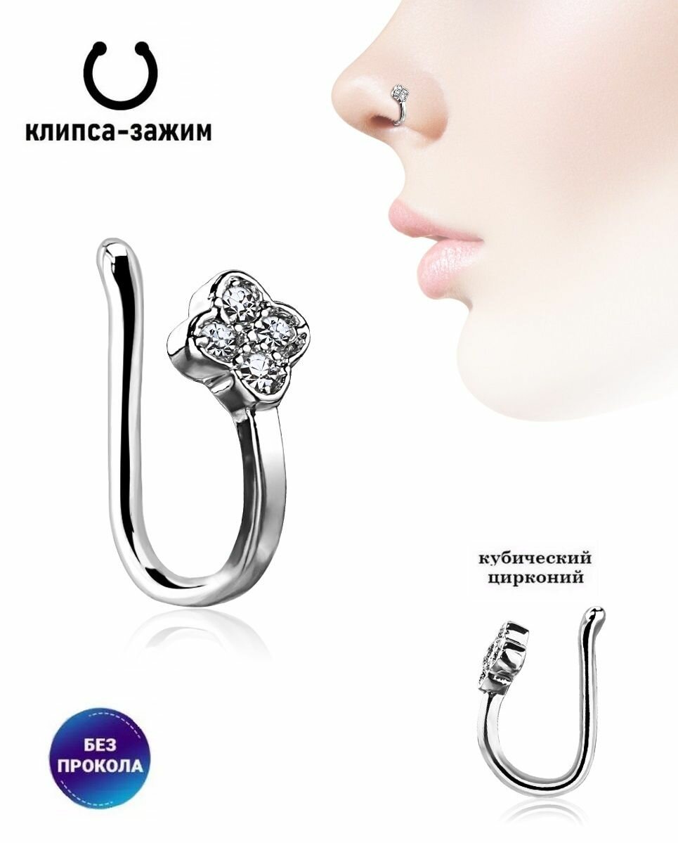 Пирсинг-обманка, клипса для носа/ушей, цветок с цирконами/ не требует прокола