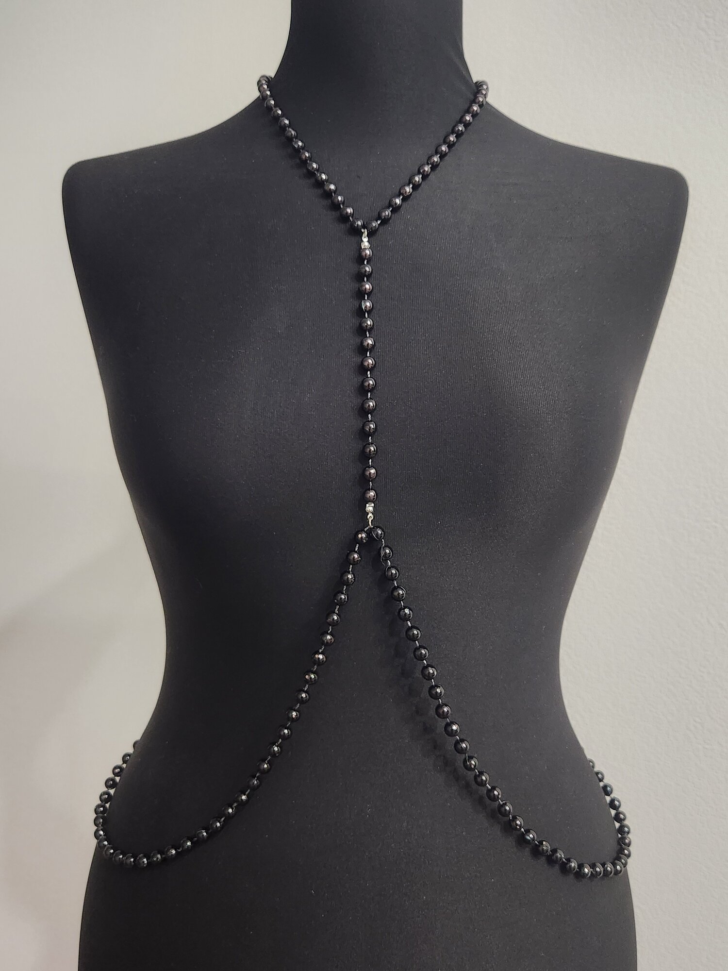 Бодичейн, черная цепочка на тело и плечи из бусин