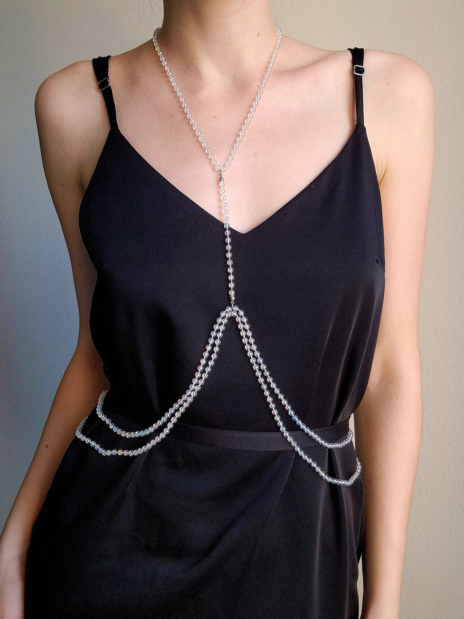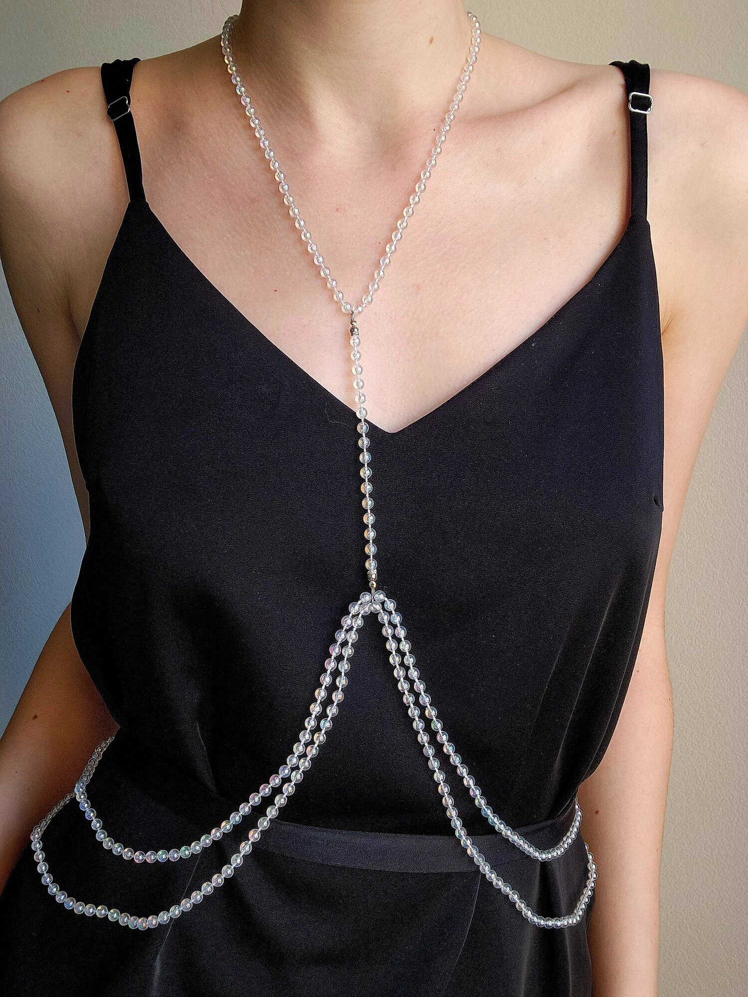 Бодичейн купальник прозрачная цепочка на тело и плечи из бусин