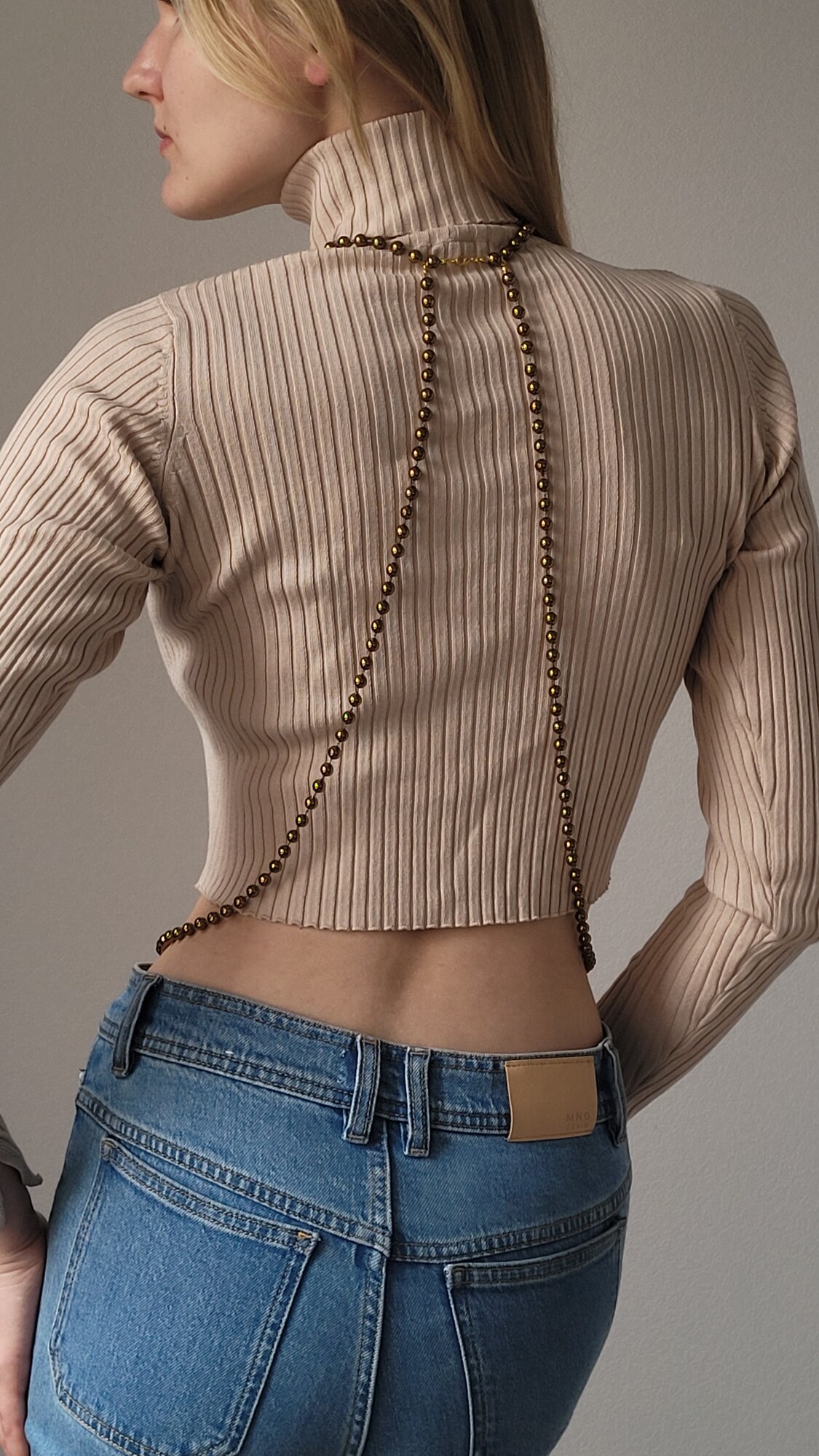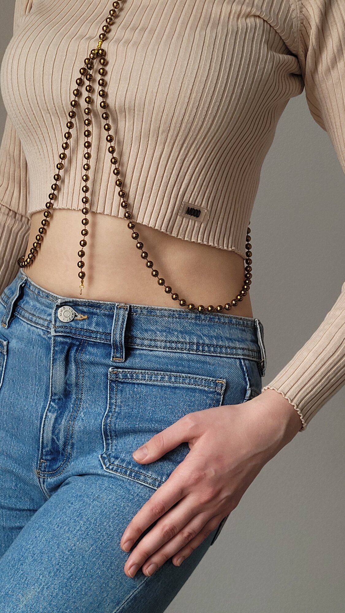 Бодичейн, медная цепочка на тело и плечи из бусин