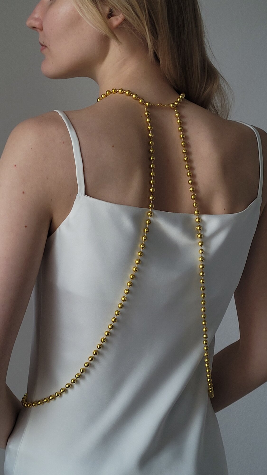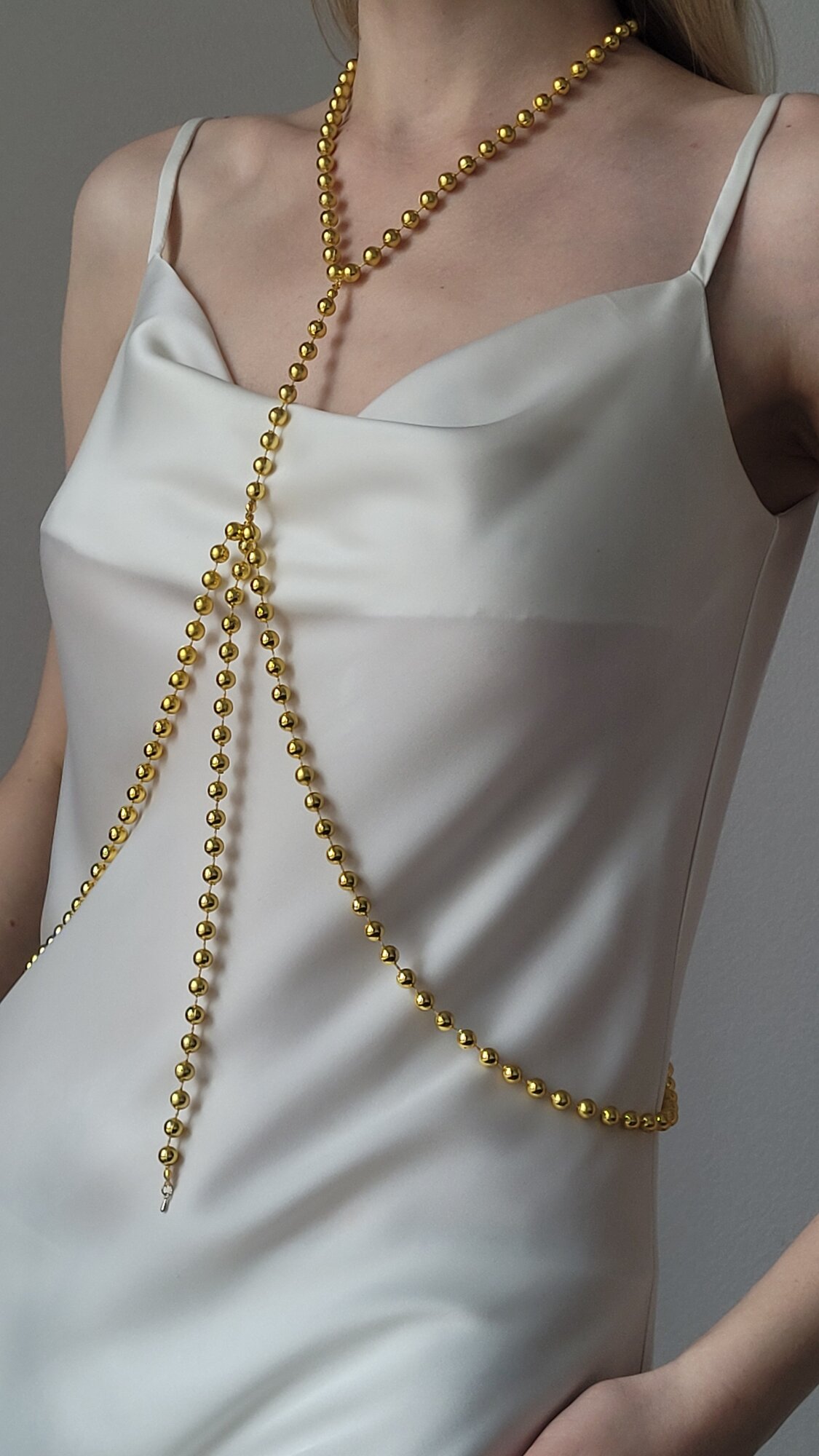 Бодичейн, медная цепочка на тело и плечи из бусин