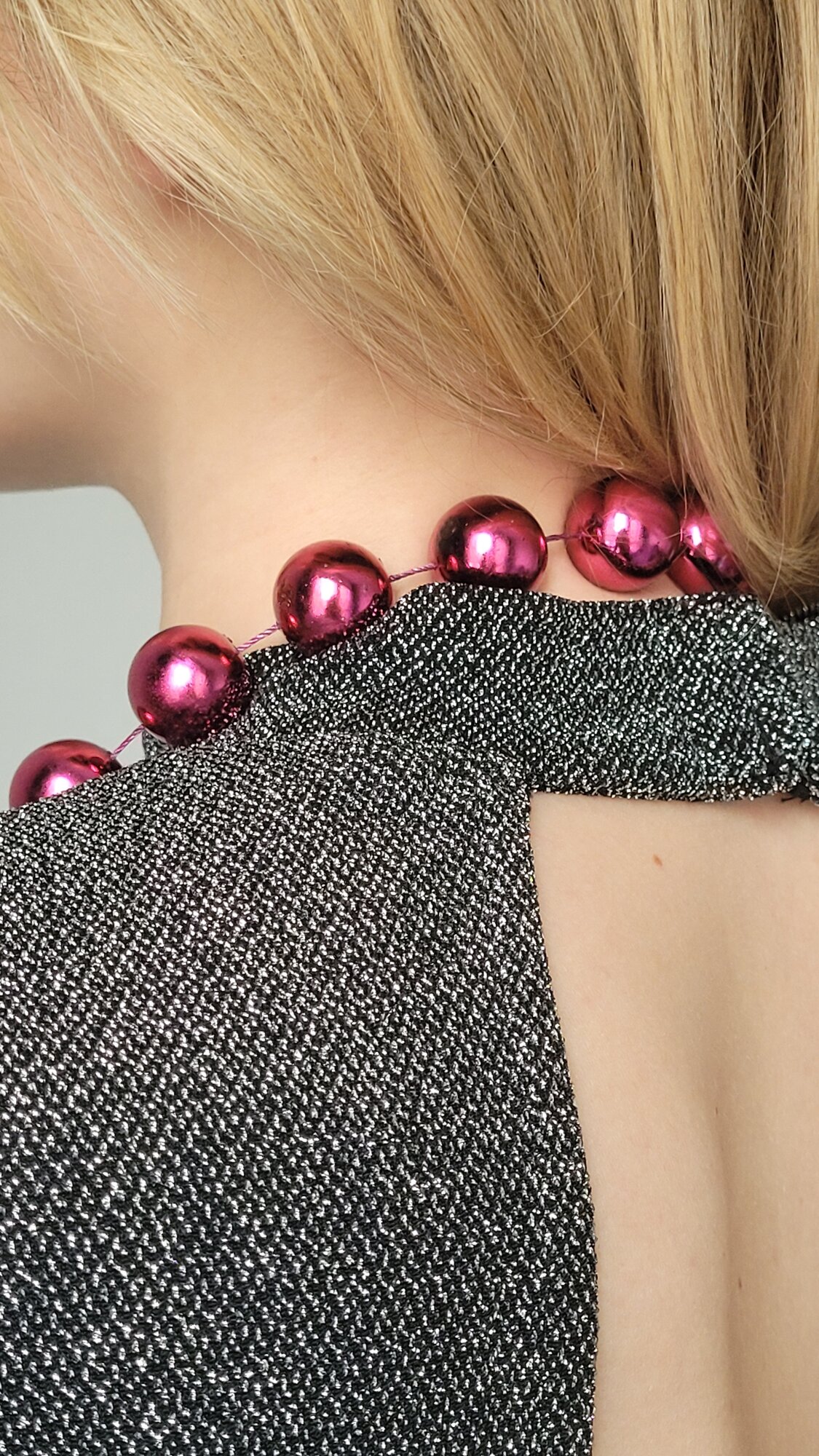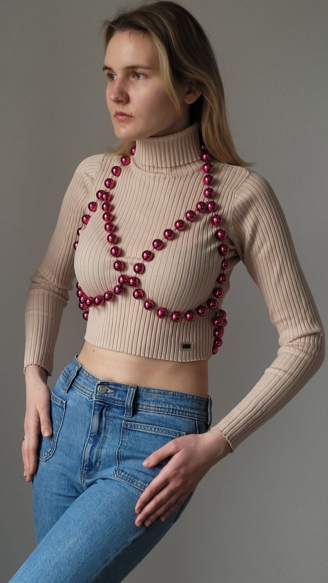 Бодичейн купальник розовая цепочка на тело и плечи из бусин