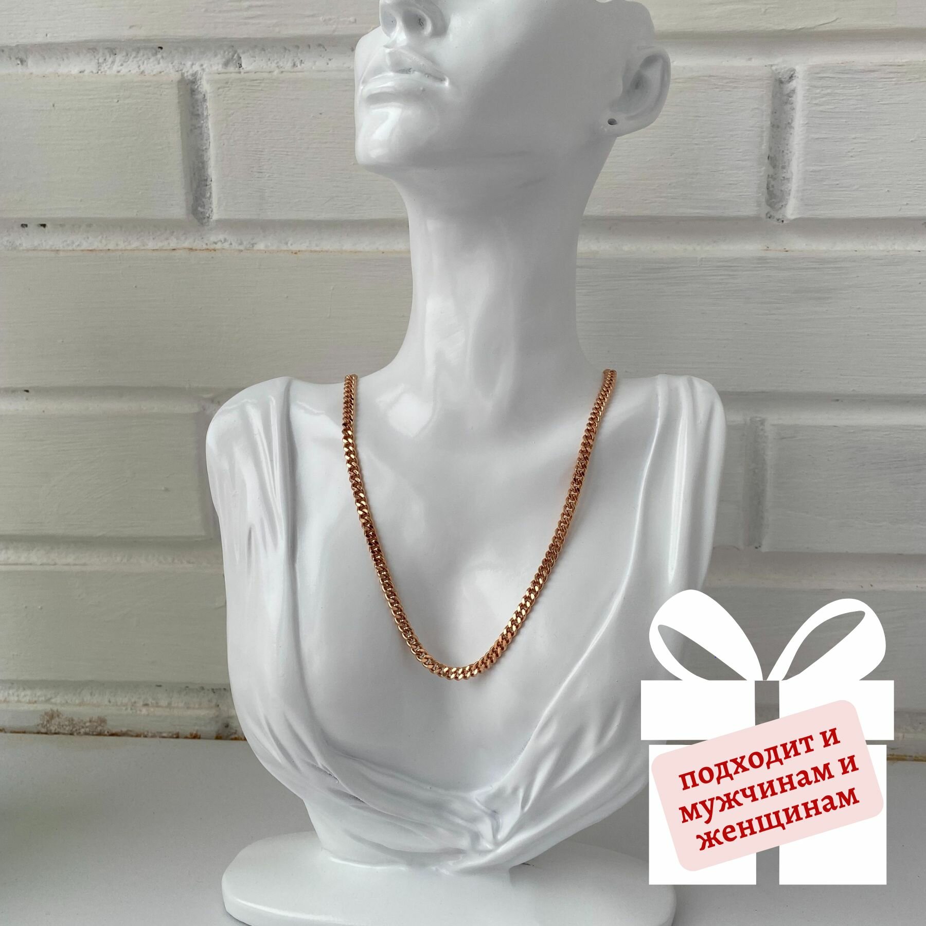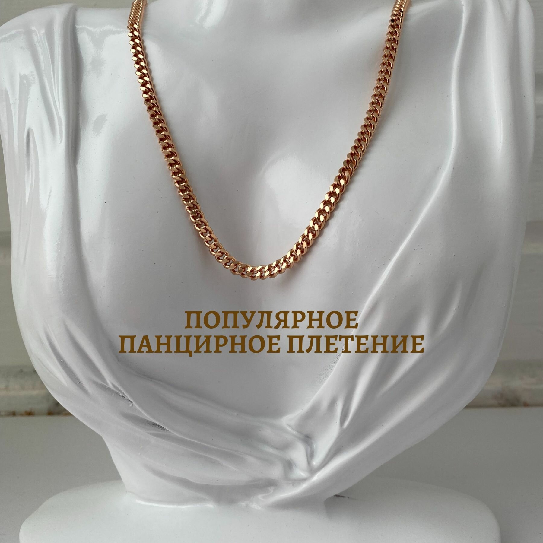 Цепочка на шею мужская, женская панцирное плетение Медицинское золото