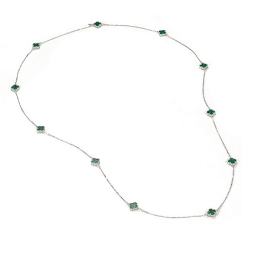 Купить Колье Dewi, серебро, 925 проба, родирование, малахит, длина 90 см., green