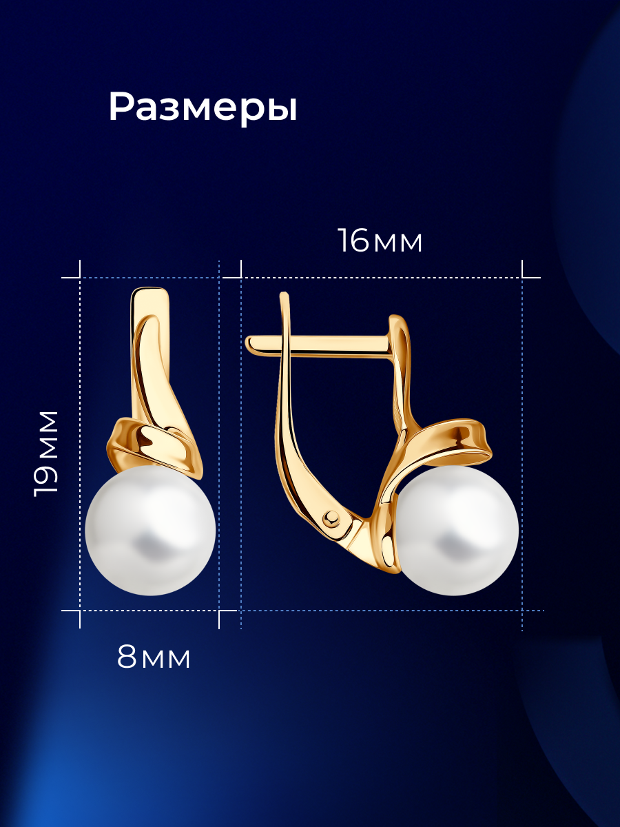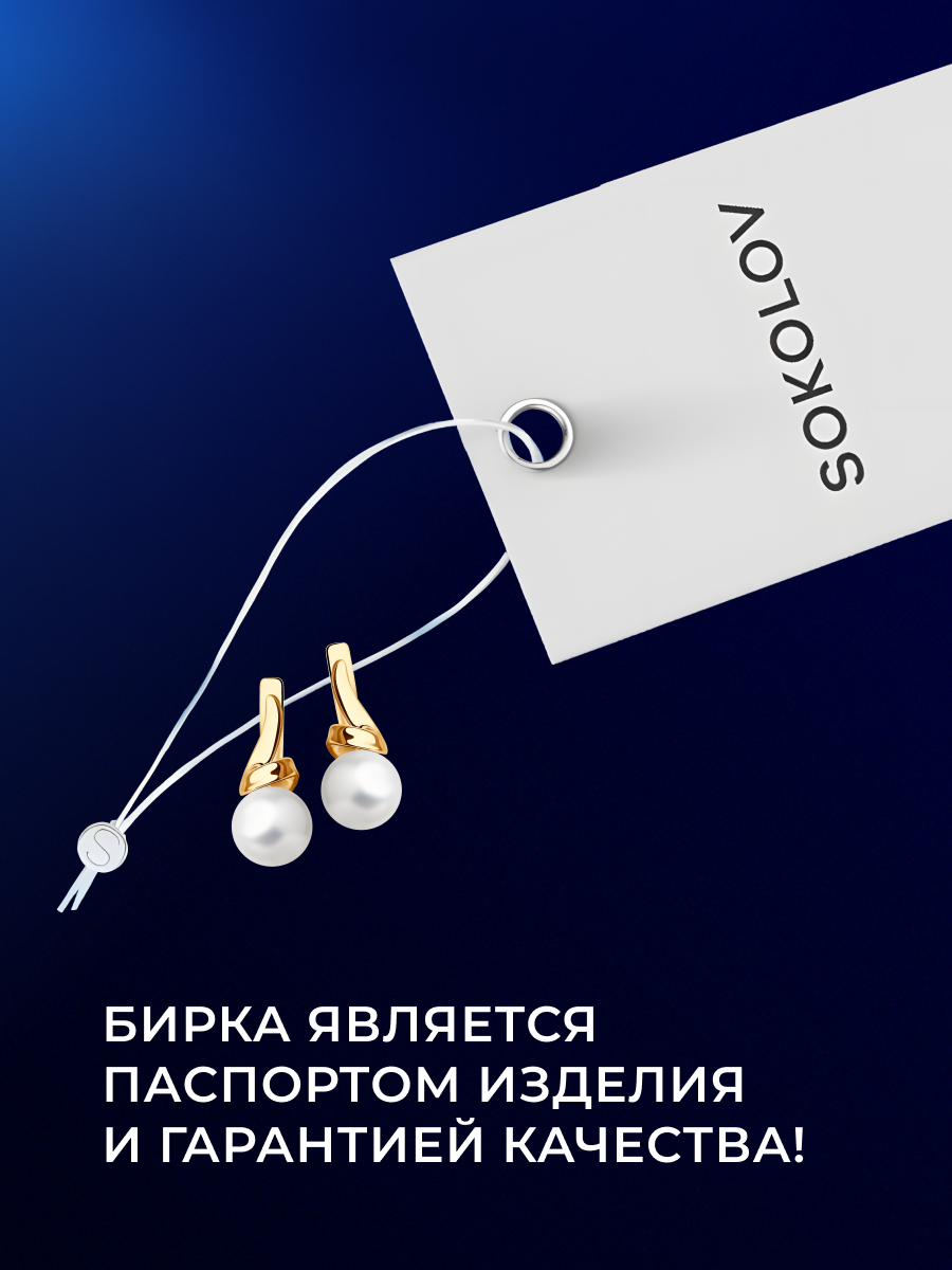 Купить Серьги SOKOLOV, серебро, 925 проба, золочение, жемчуг, размер 18 мм