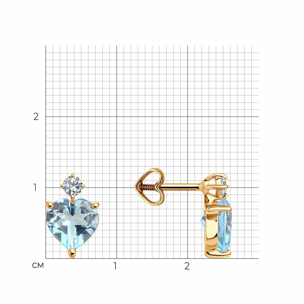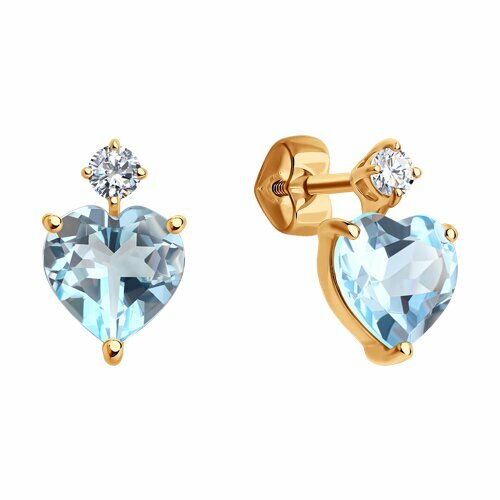 Купить Серьги пусеты SOKOLOV, красное золото, 585 проба, топаз, фианит, размер 11 мм