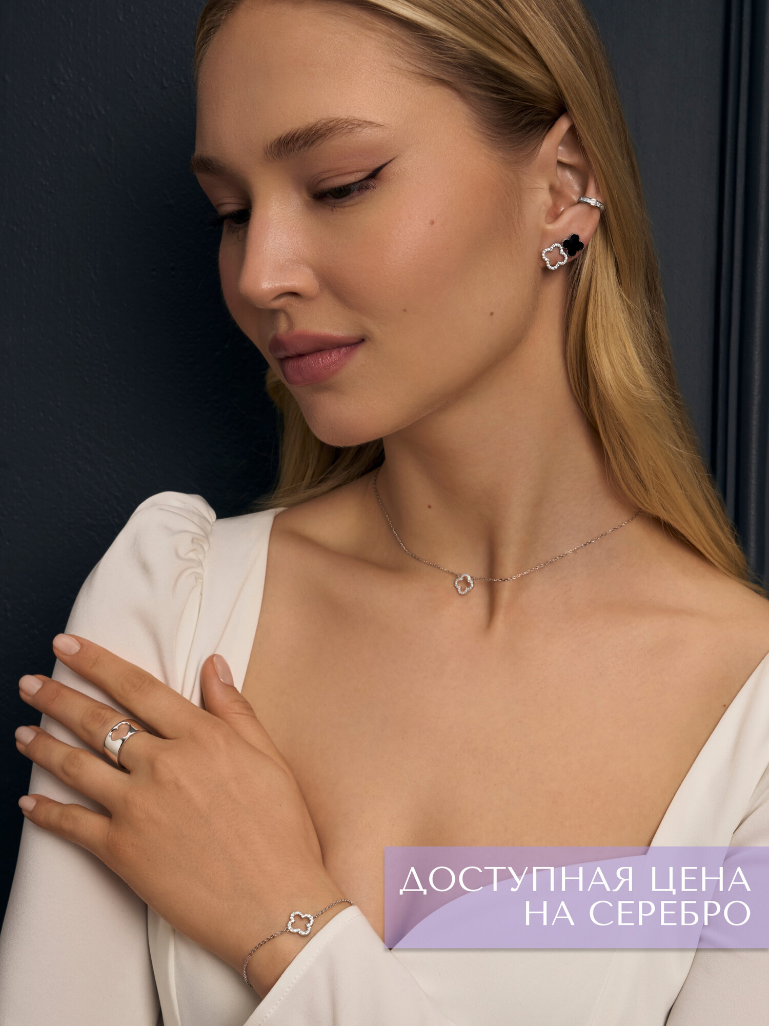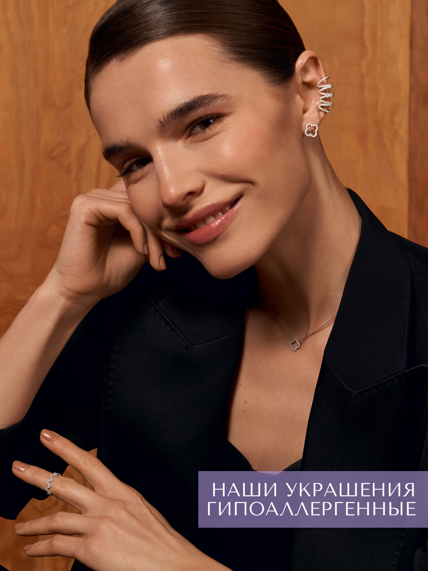 Серьги пусеты MIESTILO, серебро, 925 проба, родирование, фианит, размер 10 мм, длина 1 см, , серебристый интересное: