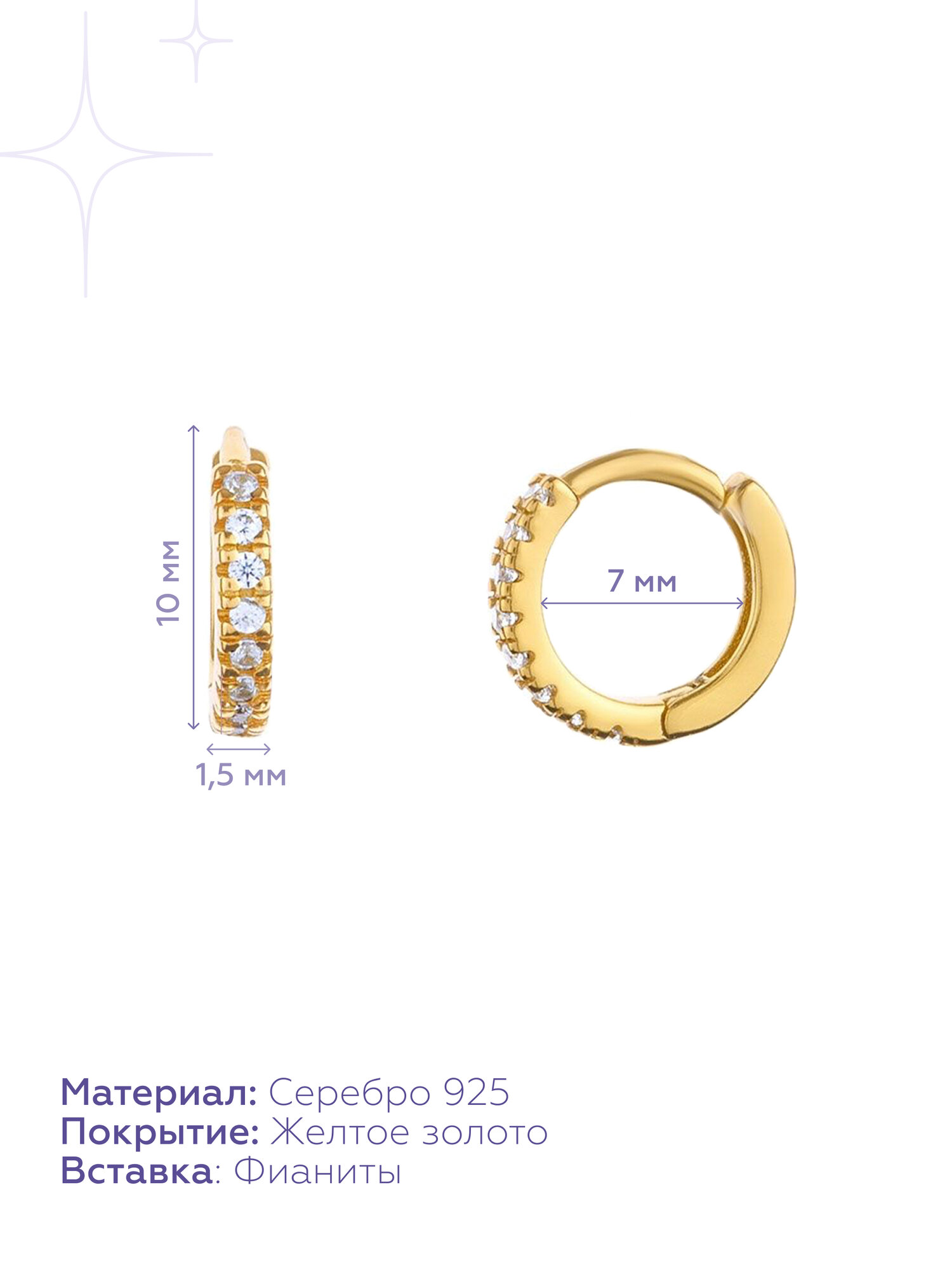 Серьги конго MIESTILO, серебро, 925 проба, золочение, фианит, размер 9 мм, , золотистый интересное: