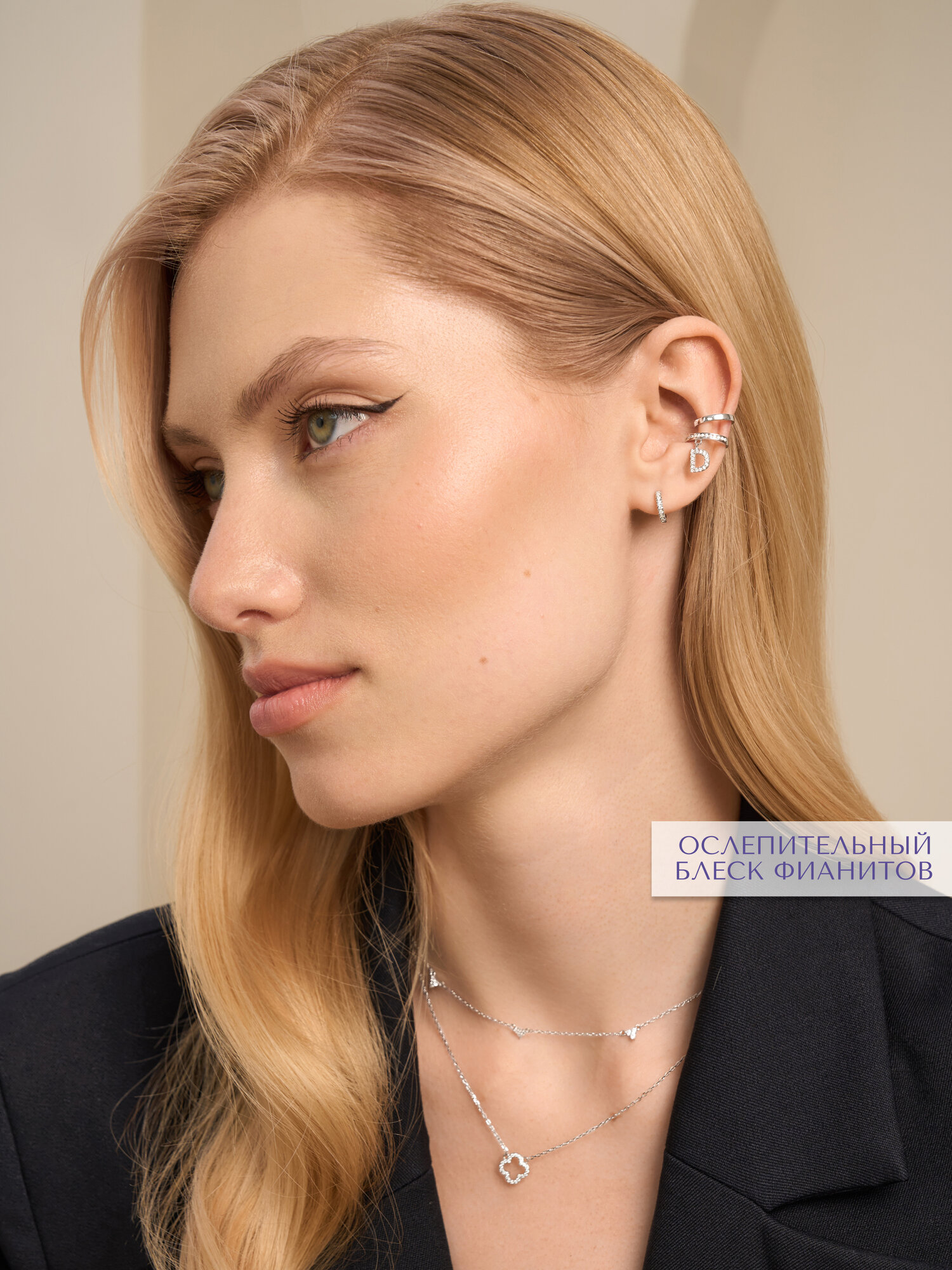 Серьги конго MIESTILO, серебро, 925 проба, родирование, фианит, размер 9 мм, , серебристый интересное: