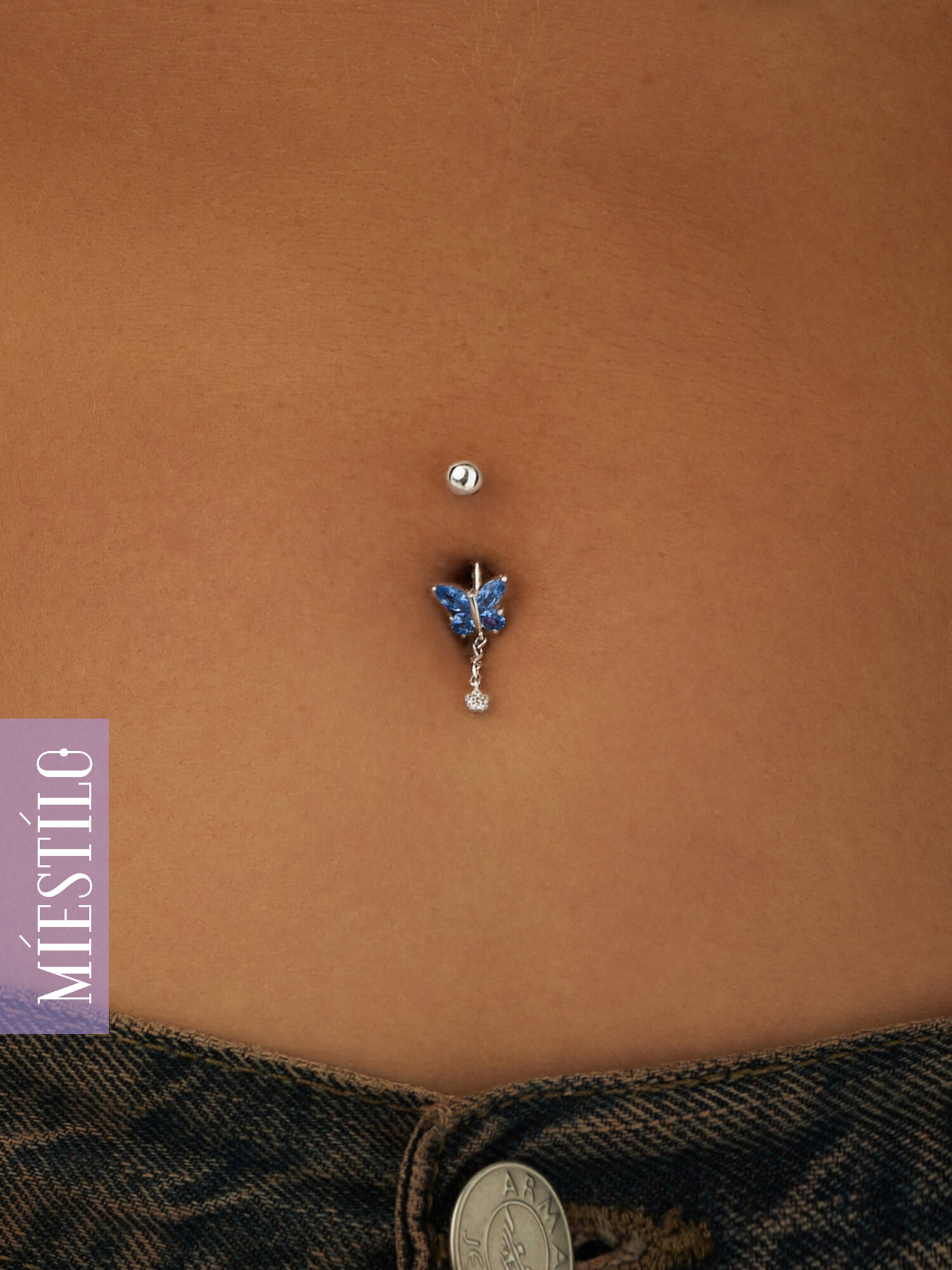 Пирсинг MIESTILO в пупок серебро 925 бабочка