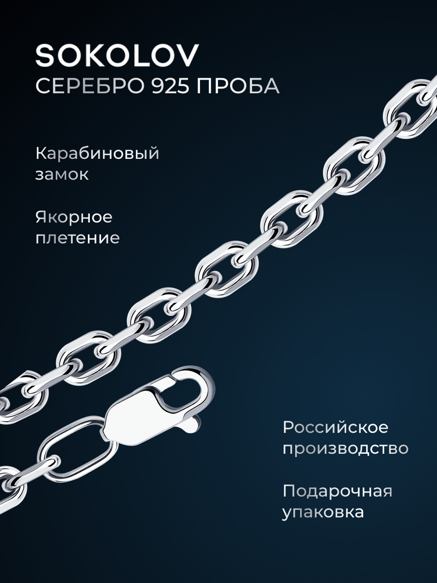 Цепь мужская SOKOLOV из серебра, плетение якорное, 925 проба 968031004, размер 50 см