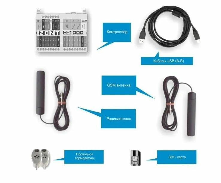 | Подробная комплектация | Контроллер, Радиоантенна, GSM антенна, Проводной термодатчик, Кабель USB, Гарантийный талон, Руководство пользователя, Упаковка |