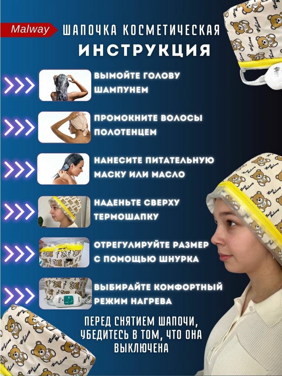 Термошапка электрическая Malway "Ночная романтика", для масок, для волос экокожа,