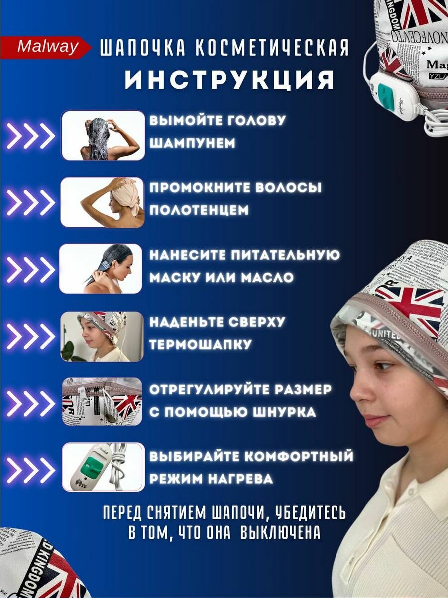 Термошапка электрическая Malway "Ночная романтика", для масок, для волос экокожа,