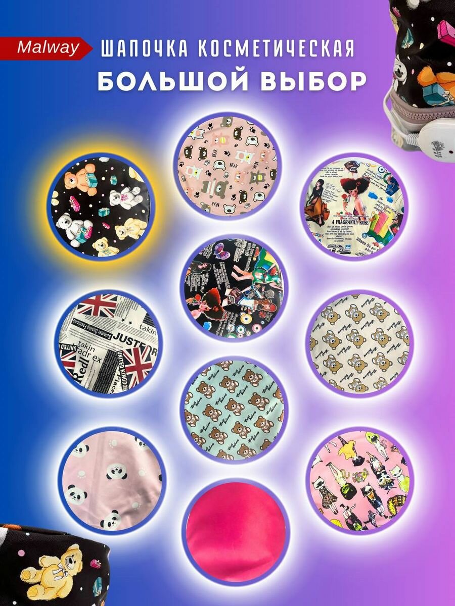 Шапочки косметические Malway мишки на розовом фоне