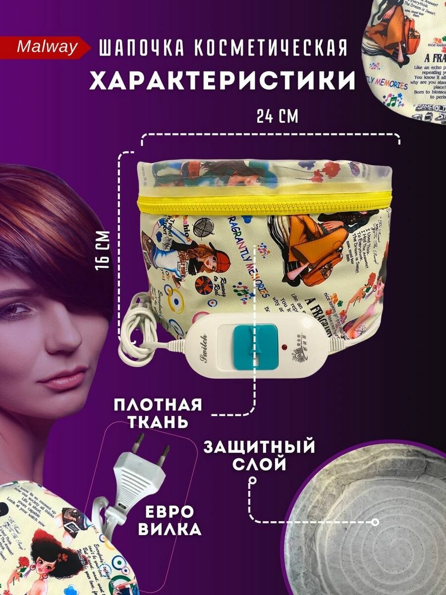 Термошапка электрическая Malway "Ночная романтика", для масок, для волос экокожа,