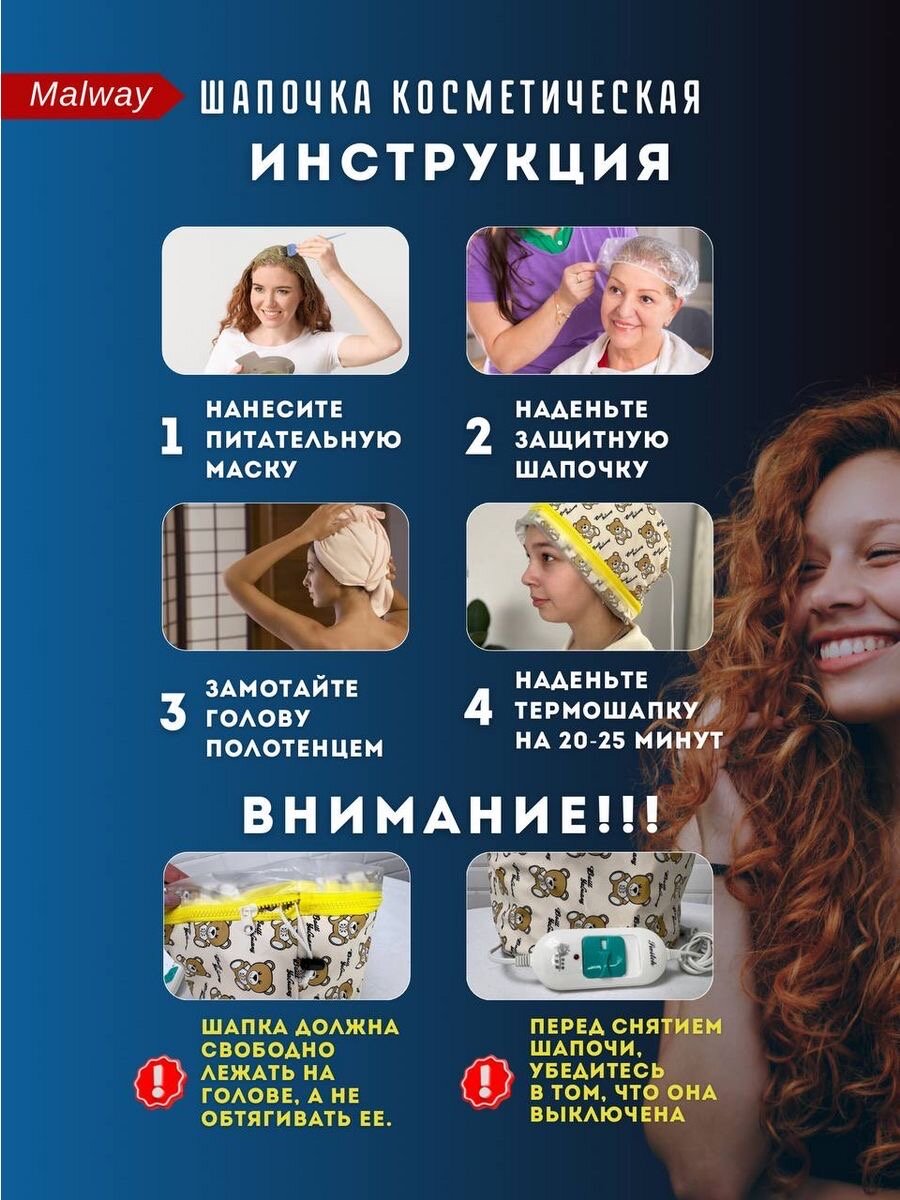 Термошапка электрическая Malway "Красивый сон", для масок, экокожа,