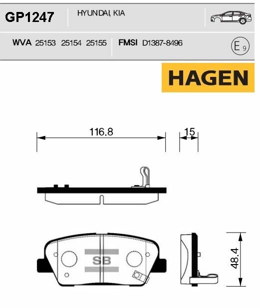 Купить Sangsin Brake HAGEN GP1247 Колодки тормозные задние
