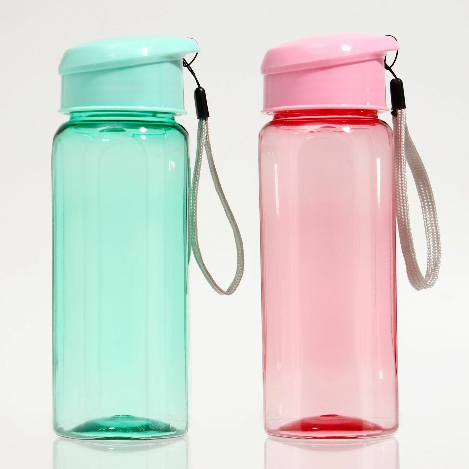 Бутылка для воды многоразовая "Лагуна" прозрачная, объем 550 мл, пластиковая, 4,7 х 22,5 х 7 см, с подвесом, цвет микс