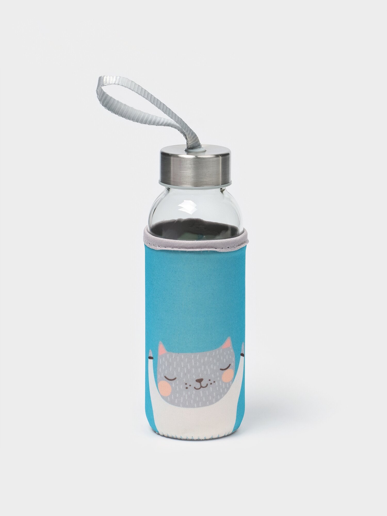 Бутылка для воды стеклянная в чехле «Хитрый котик», 300 мл, h=17 см, рисунок МИКС интересное: