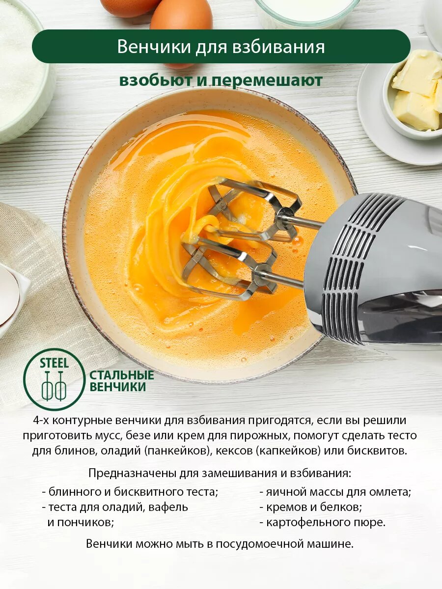 Миксер MARTA MT-MX1516A, ручной, мощность 800Вт, 5 скоростей, кнопка выброса интересное: