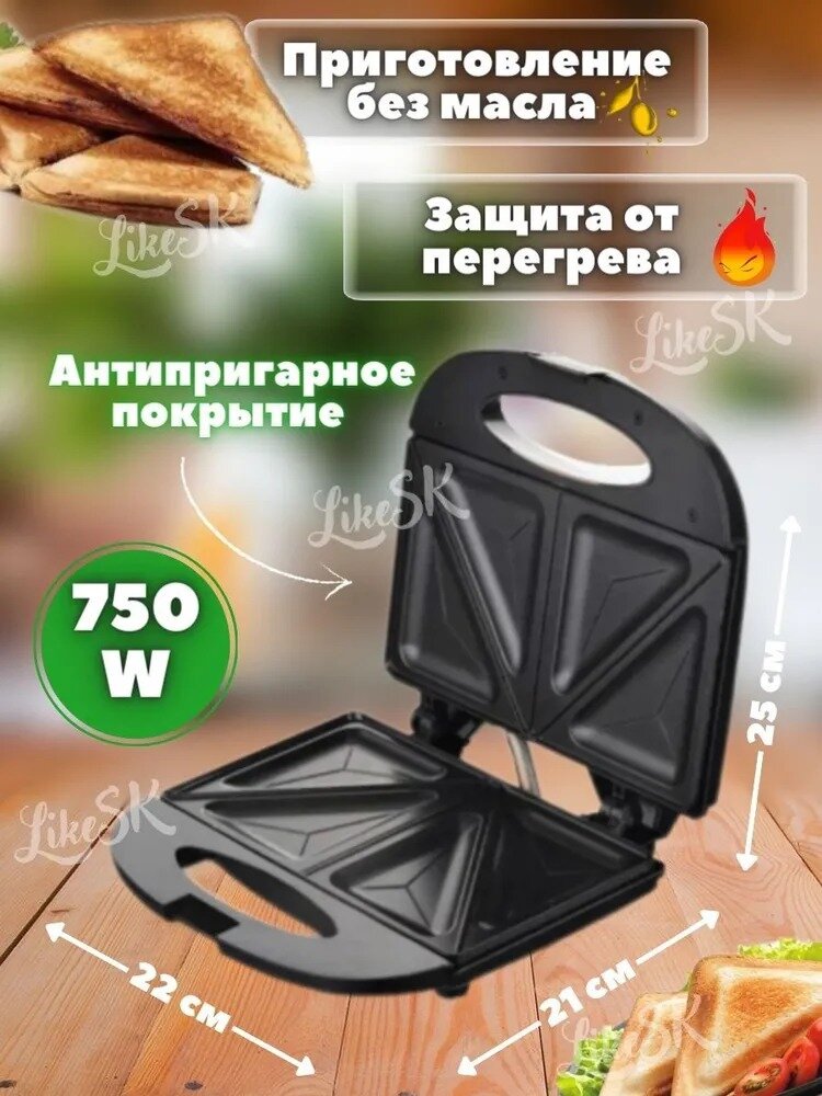 Мультипекарь для приготовления сэндвичей, сендвичница электрическая, домашняя бутербродница , индикатор нагрева,750Вт интересное: