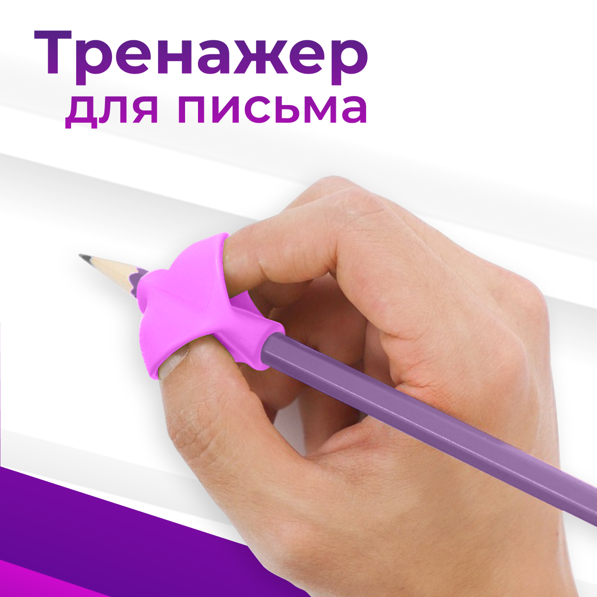 Тренажер для постановки письма / Насадка ручки для исправления почерка / Силиконовый держатель на ручку для детей / Сиреневый