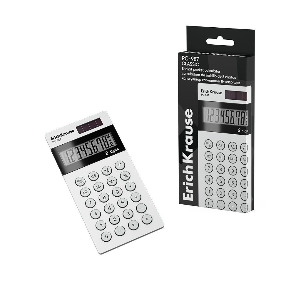 Купить Калькулятор карманный 8-разрядов ErichKrause PC-987 Classic, белый (в коробке по 1 шт.)
