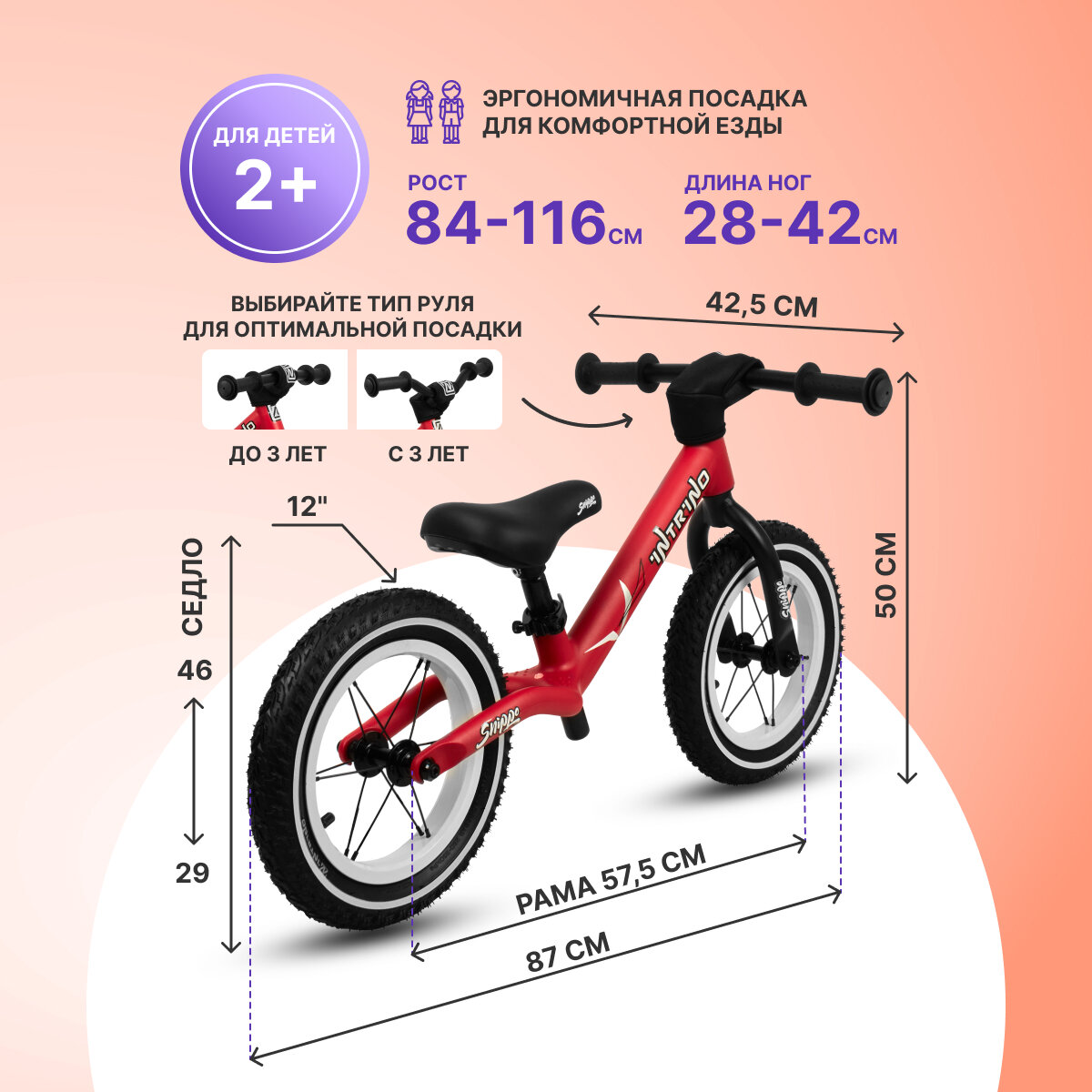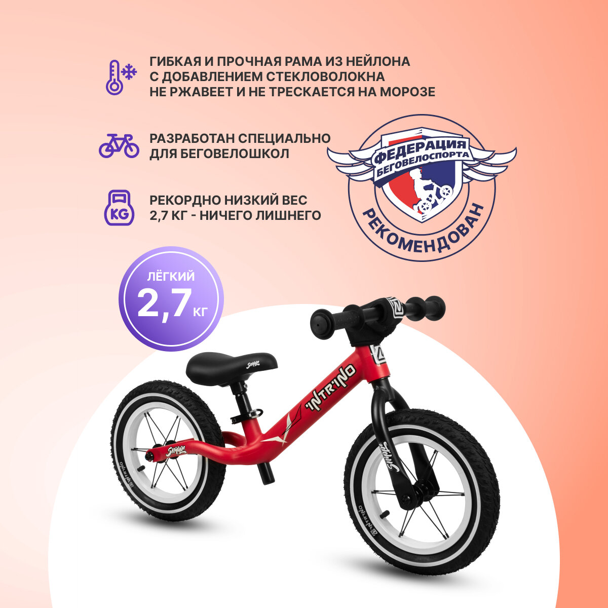 Купить Беговел Intrino Snippo детский 2+ с амортизацией, прямой руль красный+белый