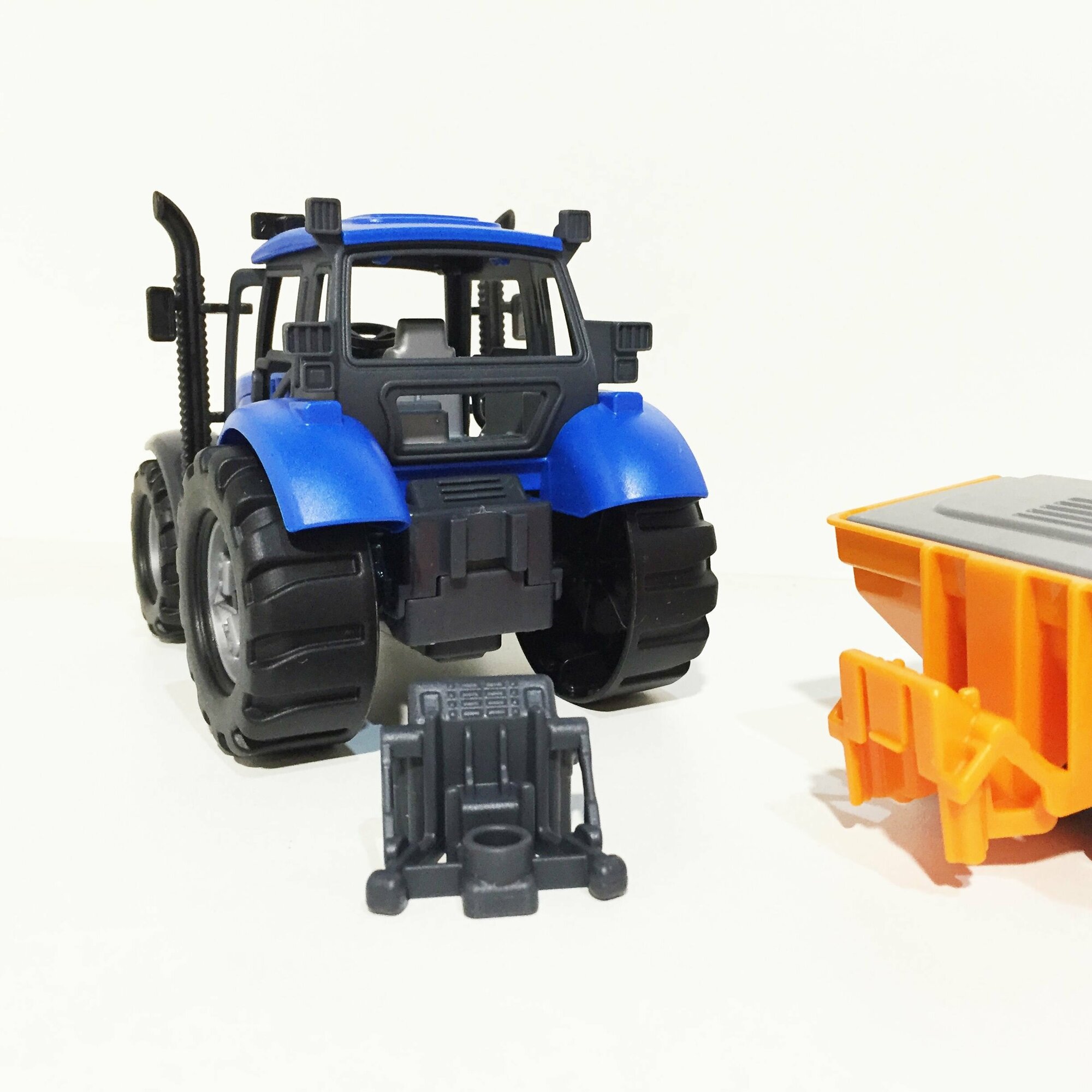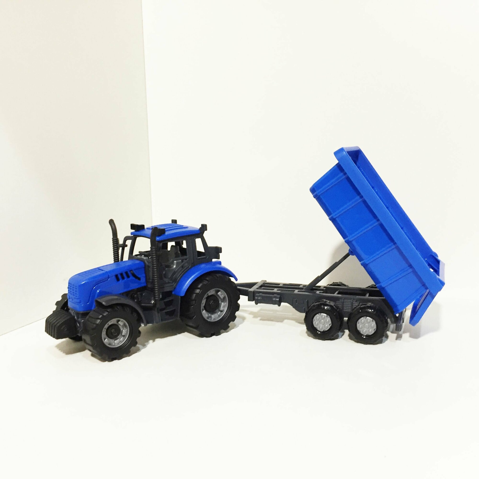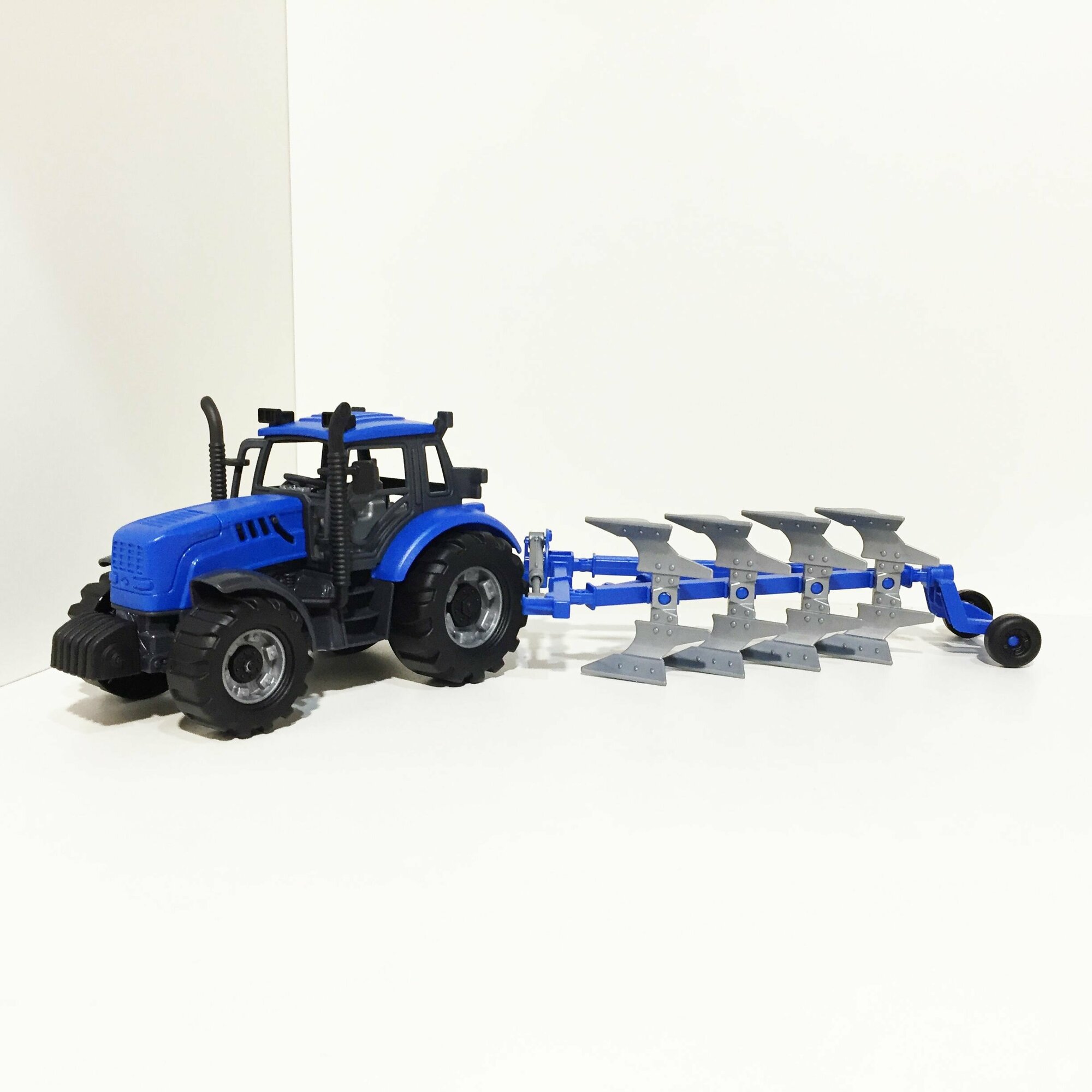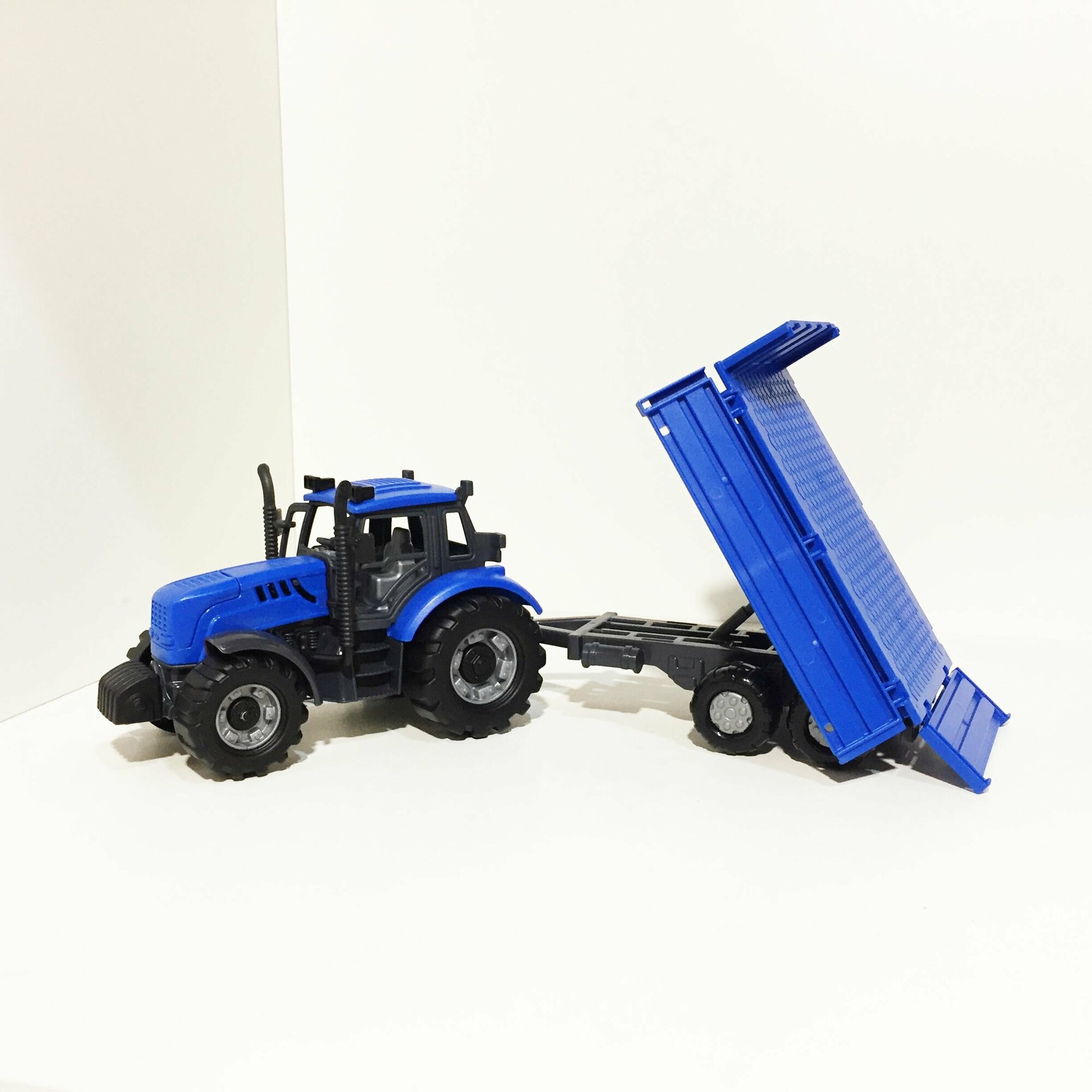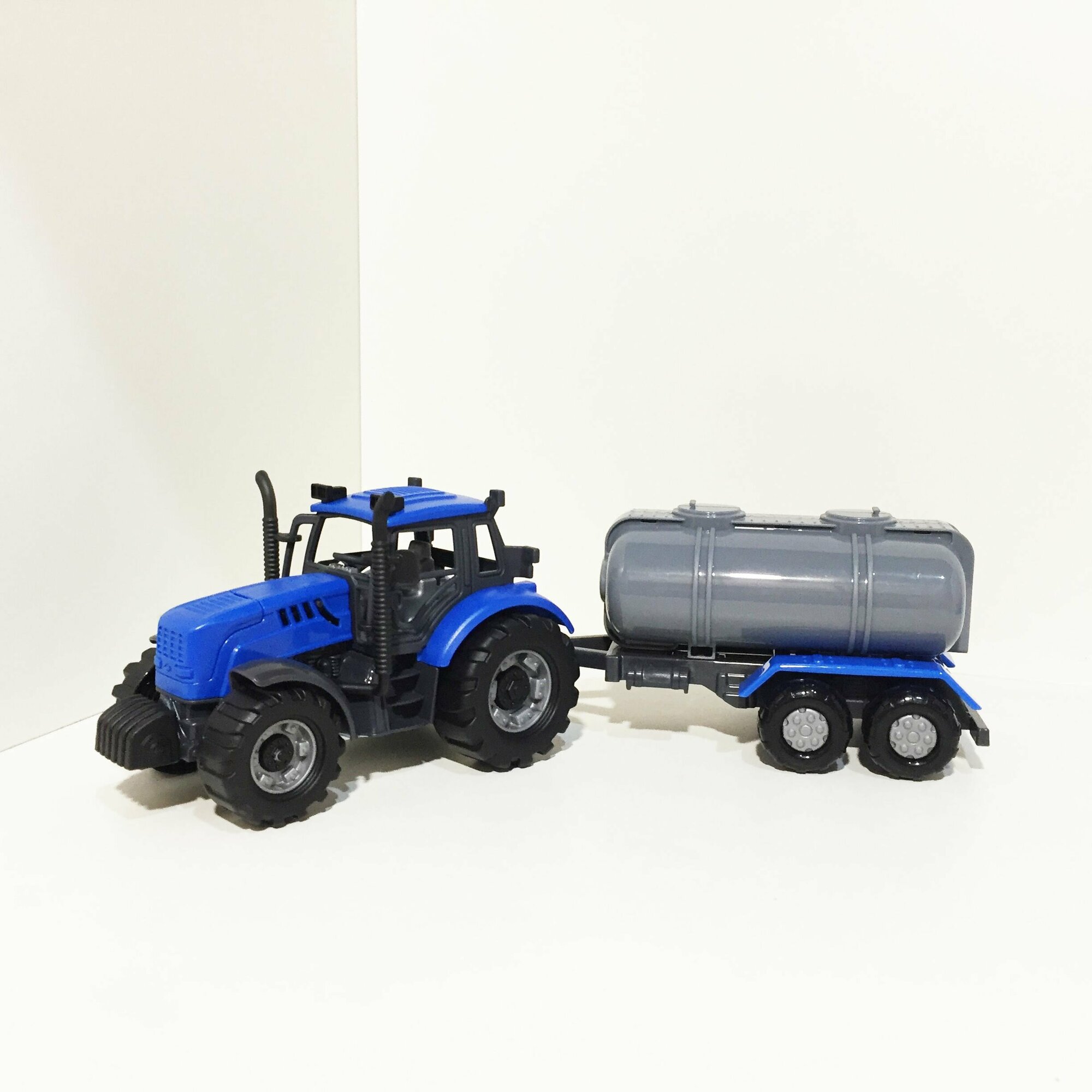 Купить Инерционный трактор 18,8 см + 5 прицепов (кузовной, бортовой, цистерна, плуг, сеялка) / Прогресс Полесье (синий)