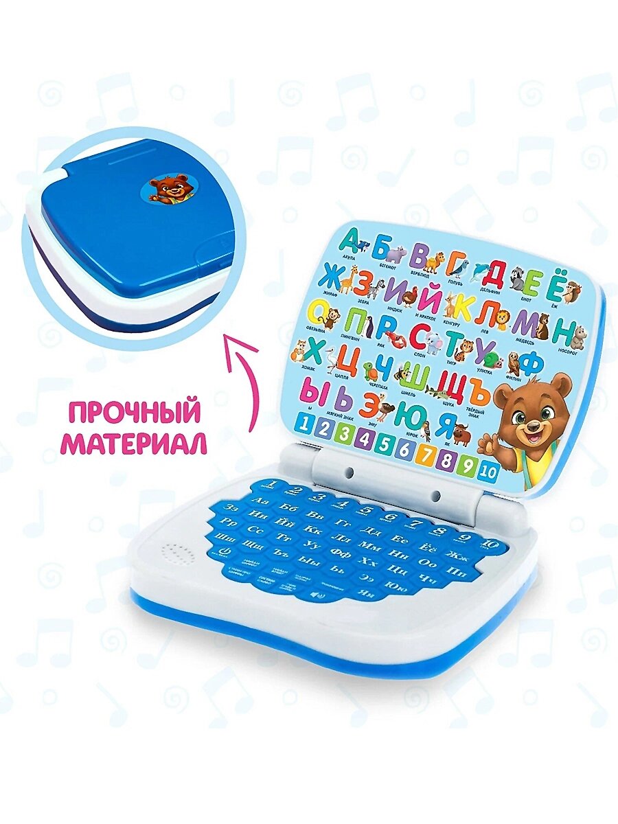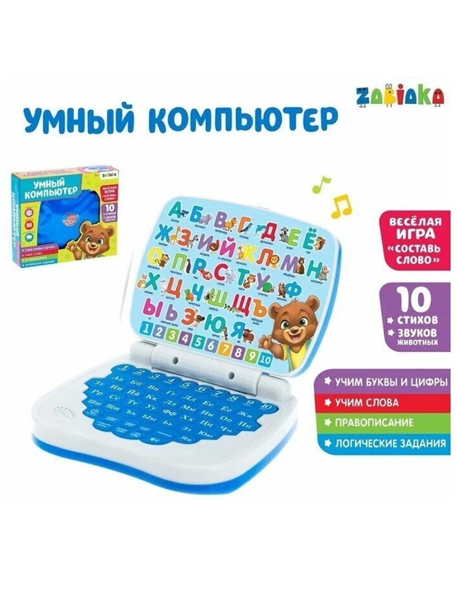 Купить Компьютер обучающий умный компьютер, игра "составь слово", 10 стихов и звуков животных Цвет Голубой ZABIAKA 3984904