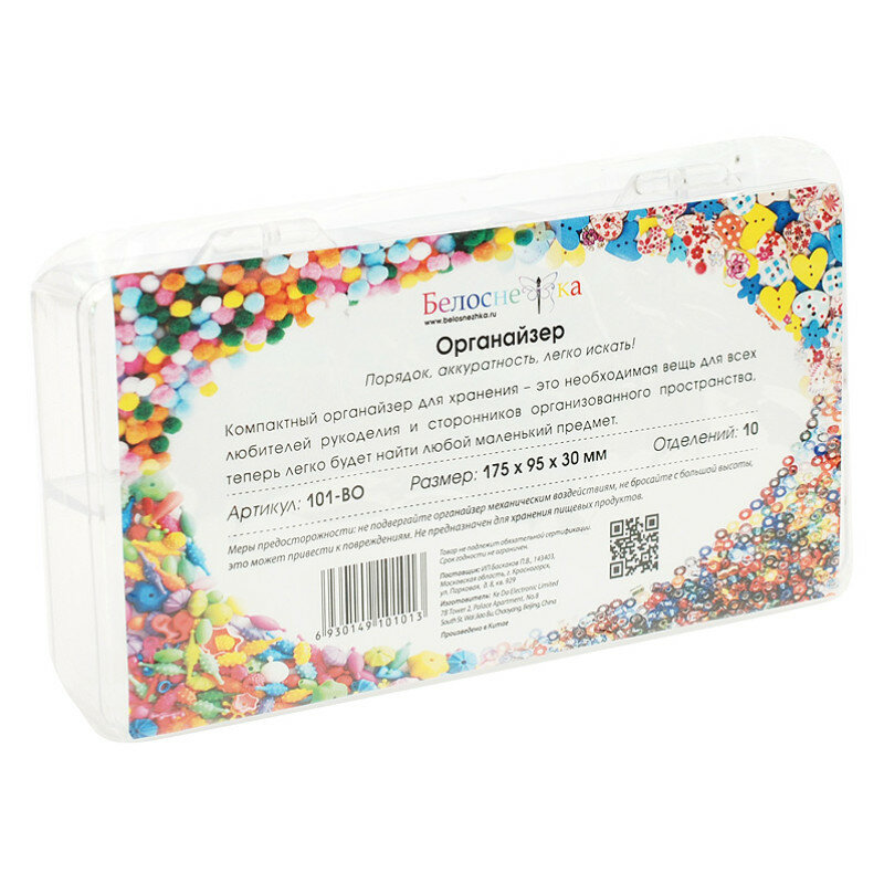 BO-101 Органайзер ТМ Белоснежка, 17.7 * 8.9 * 3.2 см 10 отд. размером 3,4*4,2*3 см интересное: