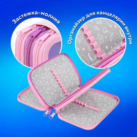 Пенал школьный для девочки для ручек, карандашей Пифагор, 3 отделения, ламинированный картон, 19х11 см, Sweet Dreamer, 271545