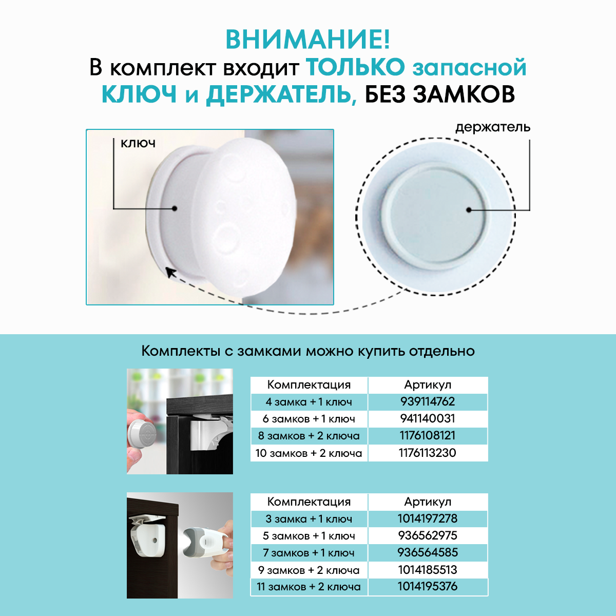 Магнитный защитный замок блокиратор на дверцу шкафа, комплектация 6 замков и 1 ключ