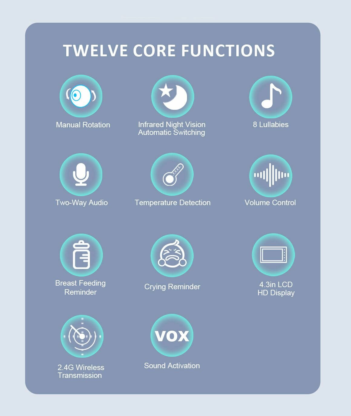 | Особенности | датчик температуры, двусторонняя голосовая связь, колыбельные мелодии, функция ночного видения |